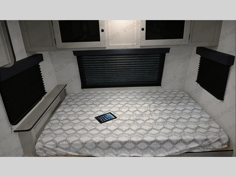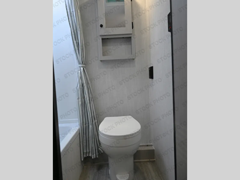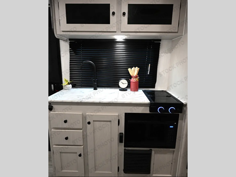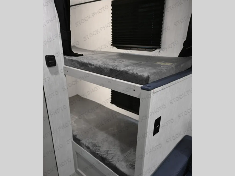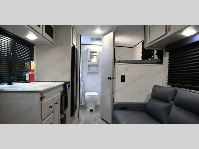 There's a comfortable place for everyone to sleep in this travel trailer with a front 54" x 80" bed and set of 30" x 70" bunk beds! The sofa can even transform into an extra sleeping space for a guest! Enjoy a meal prepared with the two burner cooktop, microwave, and 8 cu. ft. 12V refrigerator, then head outdoors to sit under the 12' power awning. The rear corner bathroom has a tub/shower for you to start your mornings feeling clean and fresh, plus a medicine cabinet to keep your toiletries close. You will have plenty of room to store your outdoor gear between the front exterior pass-through storage area and the rear exterior storage area!