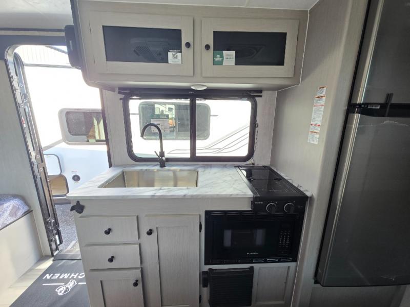 You will find comfort, convenience, and a sturdy construction with each of these Coachmen RV Apex Nano travel trailers! They are held together with an aluma-cage construction, an I-beam chassis, plus vacuum-bonded laminated dual Azdel fiberglass walls for double the protection against the elements. The 200-watt solar panel with a 30 amp control charger is included within the Off-Grid Package, along with two 20 lb. LP tanks, a high velocity power roof vent, plus 12V outlets to keep you powered up. More exterior feature include a hot/cold shower, four stabilizer jacks, a power awning with LED lighting, and magnetic baggage door catches to easily pack and unload your gear. You will love the interior of your Apex Nano with Congoleum residential flooring, one-piece seamless edge countertops, matte black hardware in the galley, and a hand-crafted wood medicine cabinet in the bath.