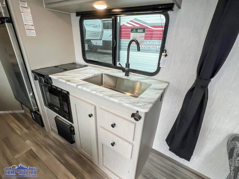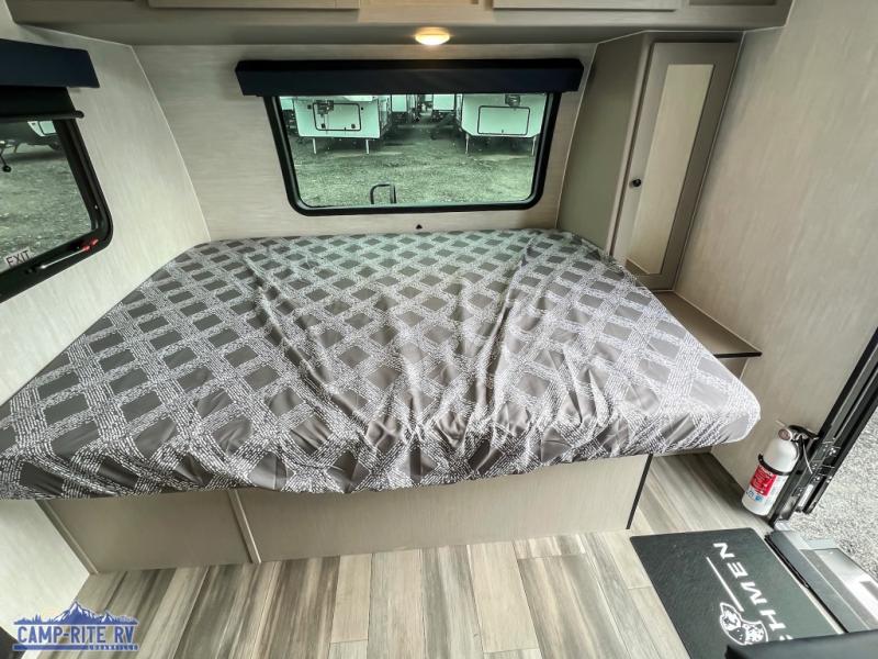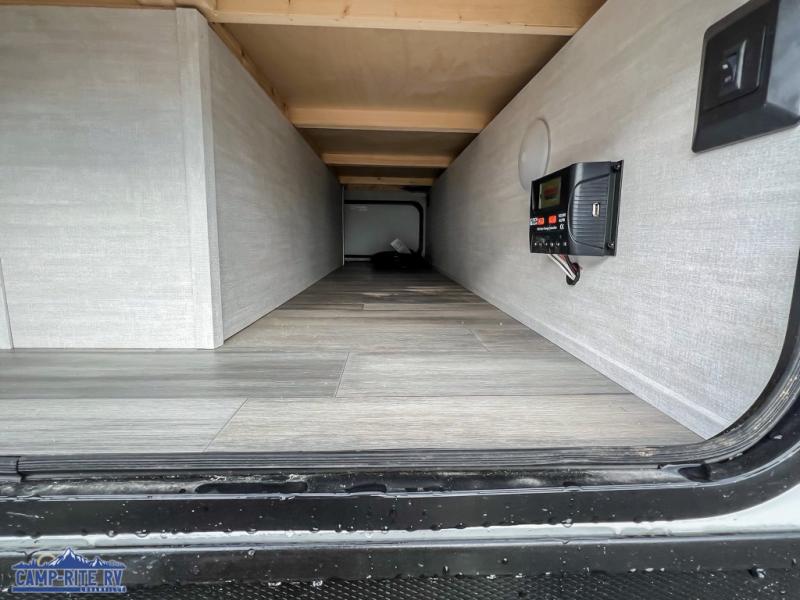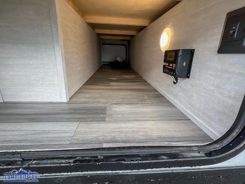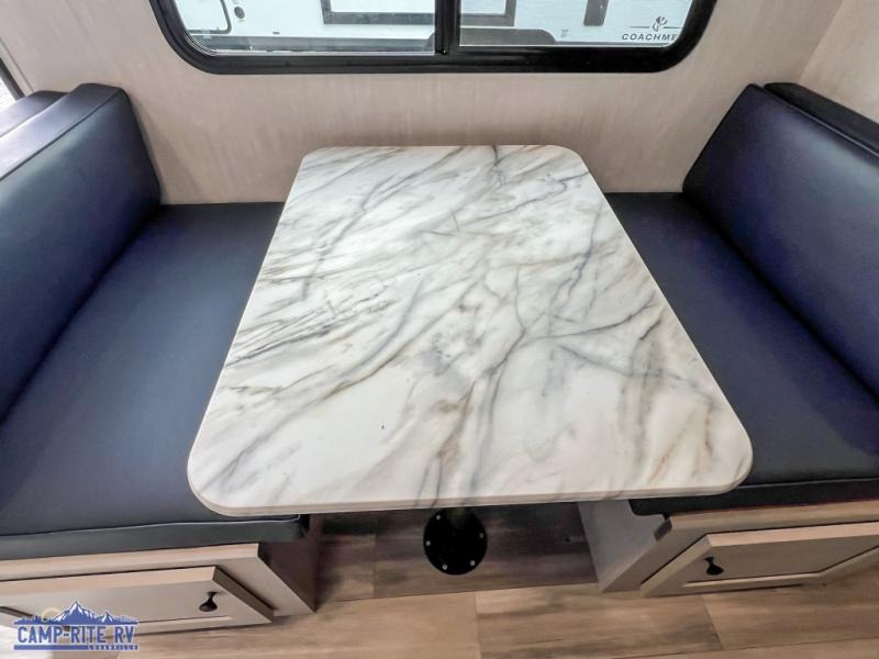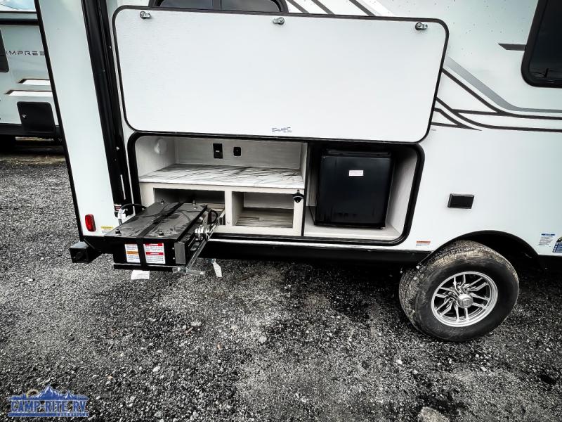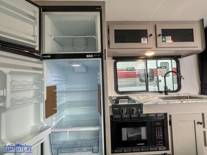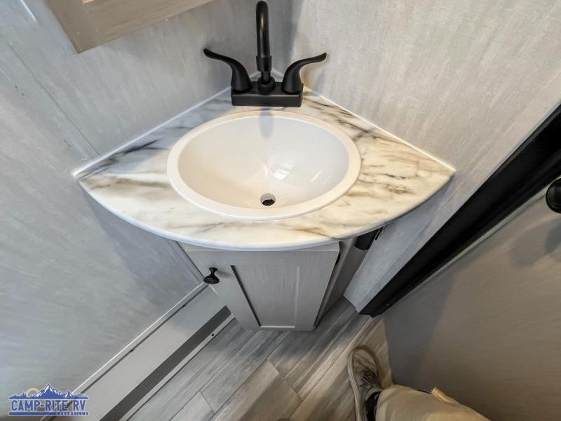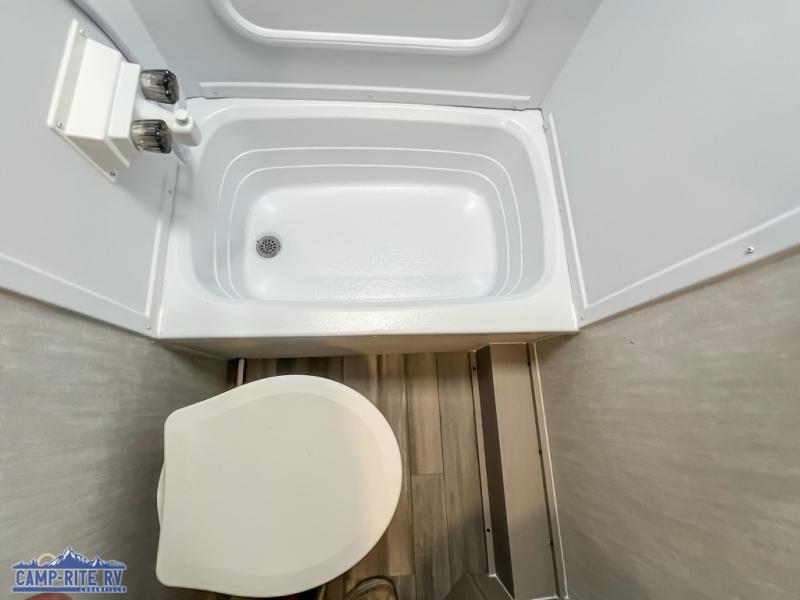 This travel trailer offers versatility with a front fixed bed or optional Murphy bed depending on your needs. There is a rear corner double bed bunk above a lower flip up double bed and a booth dinette that can transform into an extra sleeping space when you're not using it to enjoy a meal or play a card game. Everyone can stay clean with tub/shower in the rear corner bathroom and keep their bellies full with the two burner cooktop and 8 cu. ft. 12V refrigerator. You can even cook outdoors with the exterior camp kitchen while staying protected by the power awning with LED lighting!