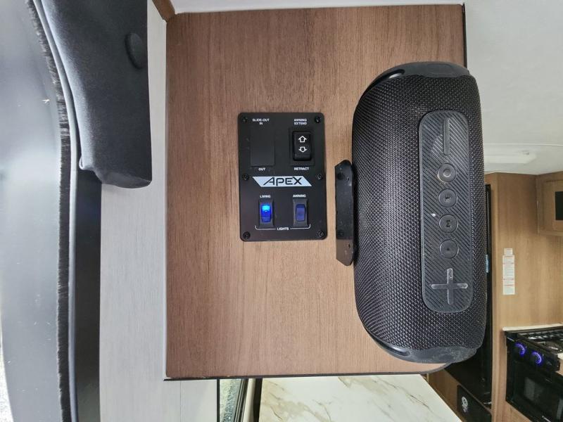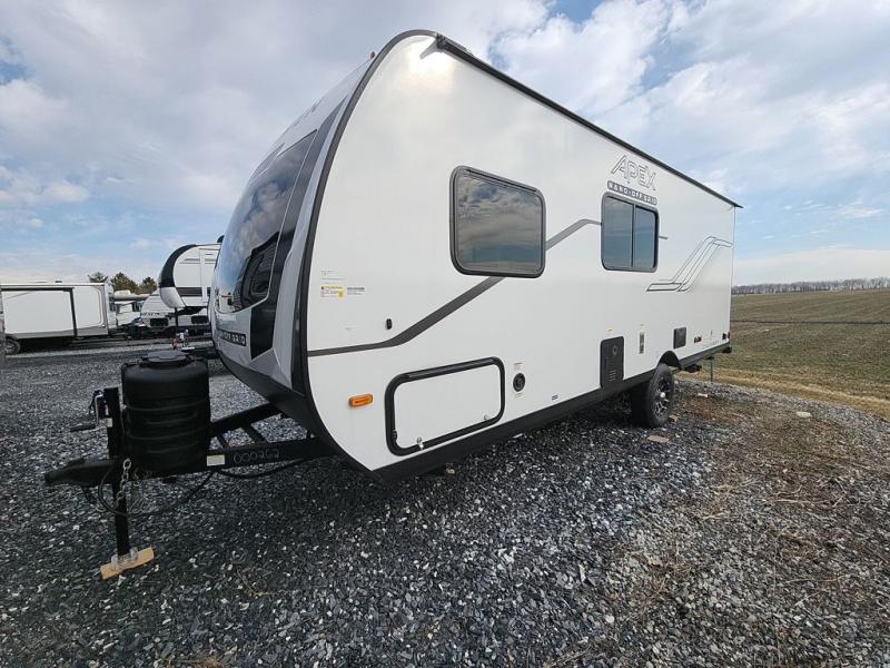 You will find comfort, convenience, and a sturdy construction with each of these Coachmen RV Apex Nano travel trailers! They are held together with an aluma-cage construction, an I-beam chassis, plus vacuum-bonded laminated dual Azdel fiberglass walls for double the protection against the elements. The 400-watt solar panel with a 30 amp control charger is included, along with two 20 lb. LP tanks, a high velocity power roof vent, plus 12V outlets to keep you powered up. More exterior features include a hot/cold shower, four stabilizer jacks, a power awning with LED lighting, and radius thumb latch baggage doors to easily pack and unload your gear. You will love the interior of your Apex Nano with Congoleum residential flooring, one-piece seamless edge countertops, matte black hardware in the galley, and a hand-crafted wood medicine cabinet in the bath.