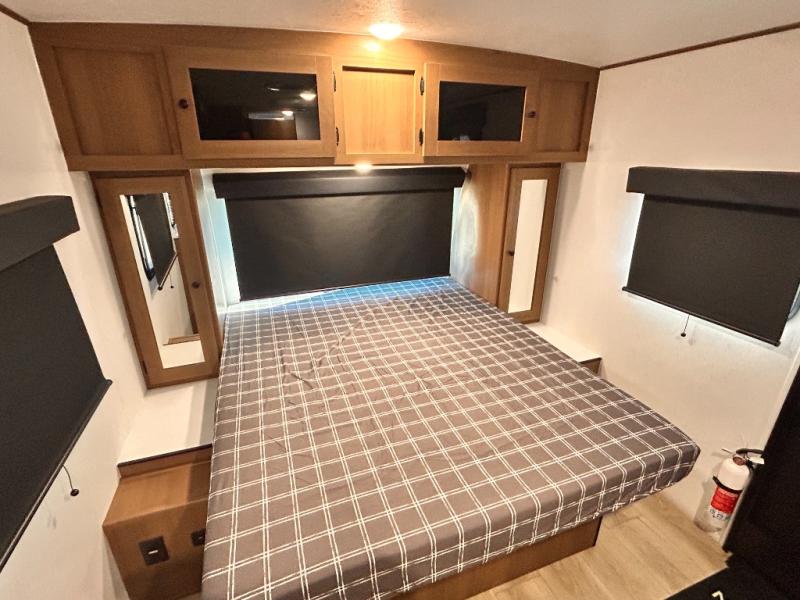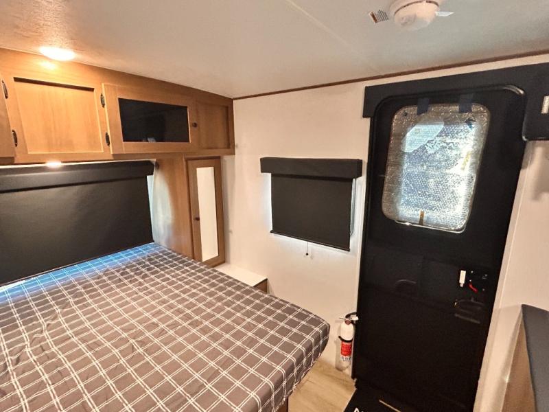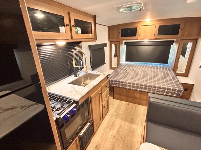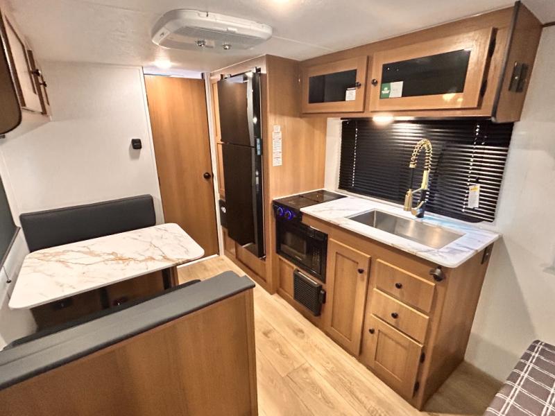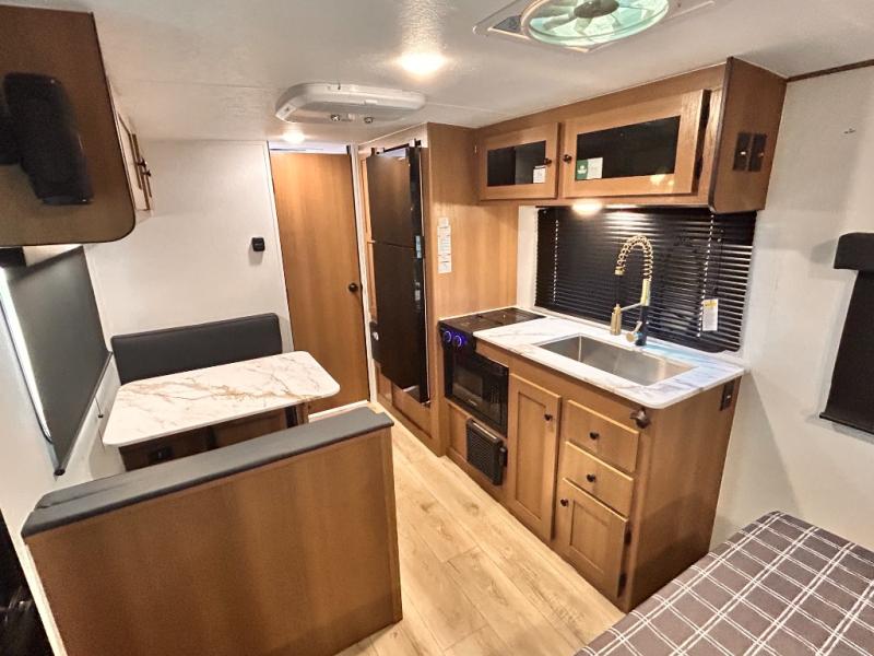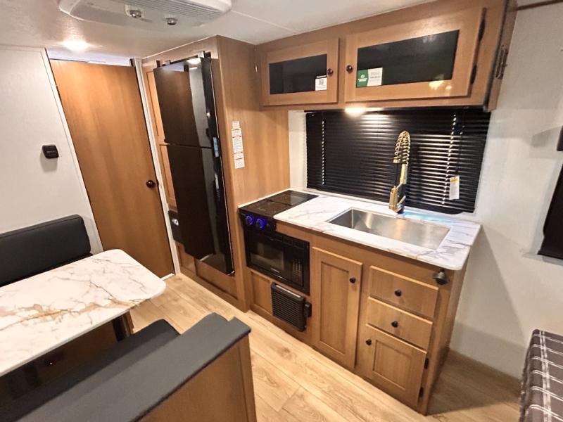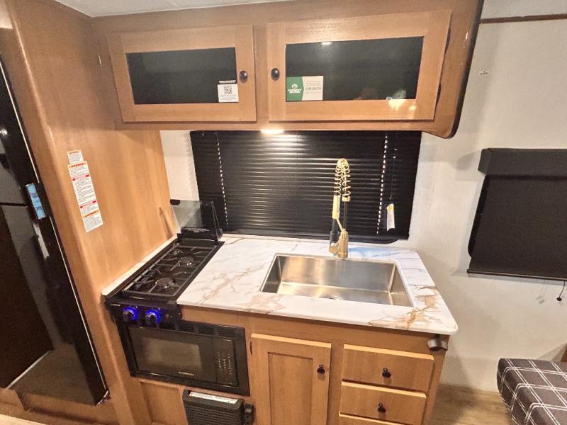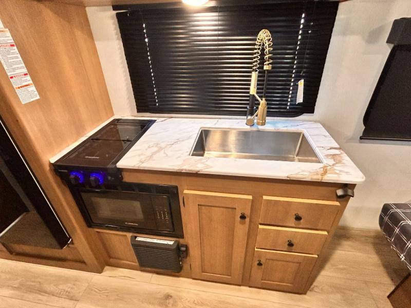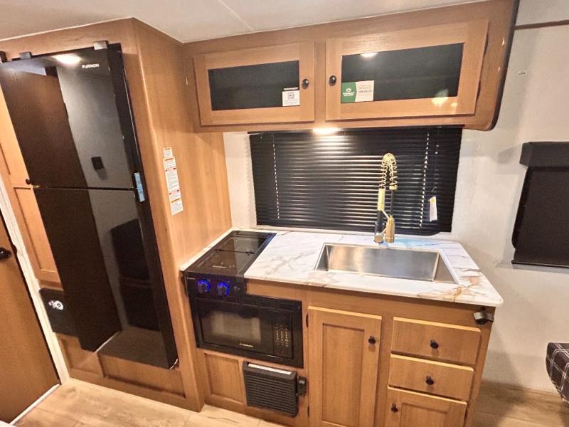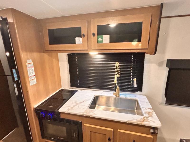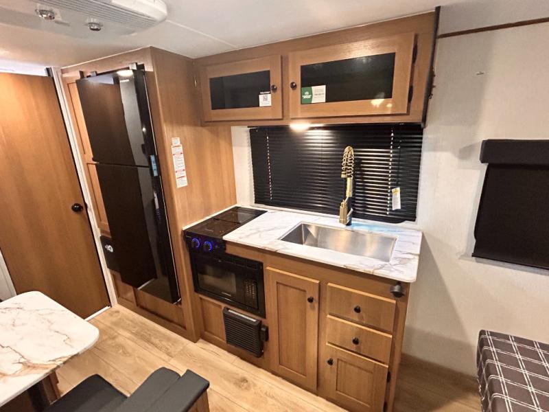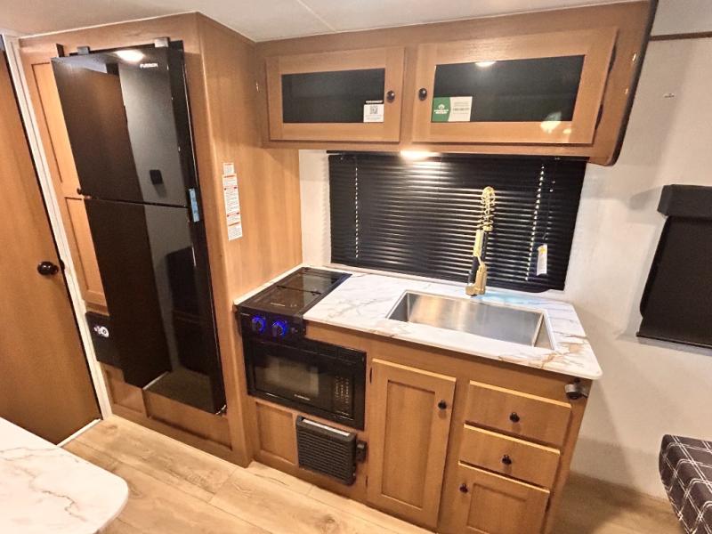 - AWAY ASSIST HANDLE, FRICTION HINGE ENTRY DOOR, SOLID STEP, MAGNETIC BAGGAGE DOOR CATCH, HARD VALANCES W /ROLLER SHADES, LED INTERIOR LIGHTS, AIR FRYER MICROWAVE, 2-BURNER COOK-TOP, 10 CU FT 12V REFER,