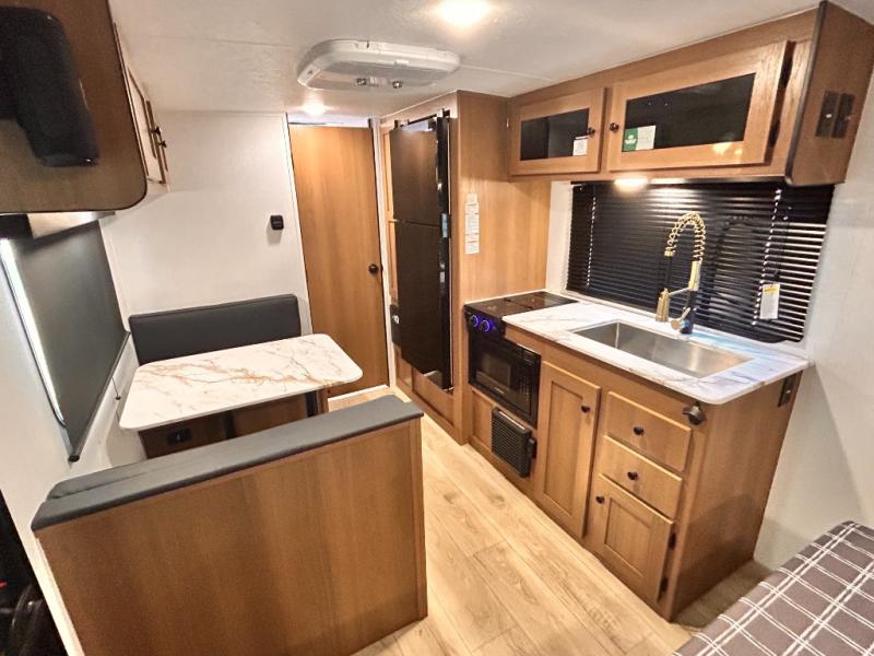 - AWAY ASSIST HANDLE, FRICTION HINGE ENTRY DOOR, SOLID STEP, MAGNETIC BAGGAGE DOOR CATCH, HARD VALANCES W /ROLLER SHADES, LED INTERIOR LIGHTS, AIR FRYER MICROWAVE, 2-BURNER COOK-TOP, 10 CU FT 12V REFER,