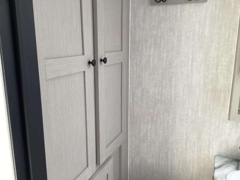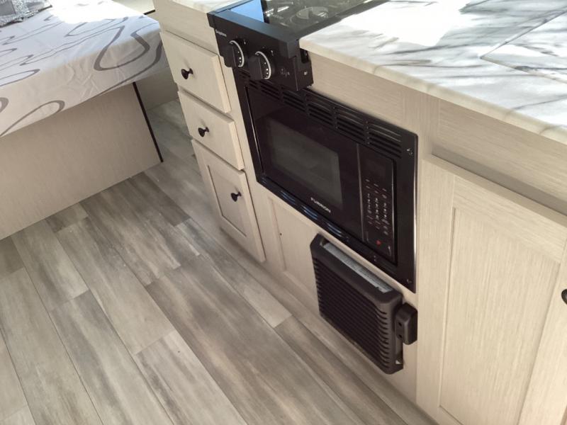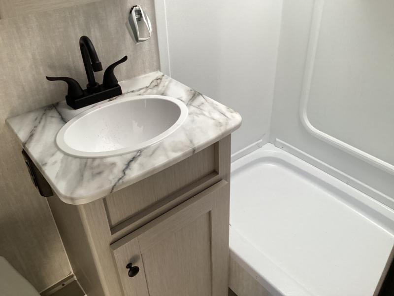 Outfitted with a tankless on-demand water heater, LED lighting throughout, a hot/cold exterior shower, and multi-speed vent fan for streamlined convenient camping. -