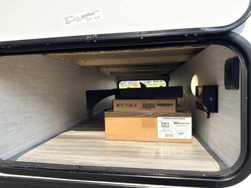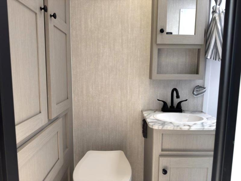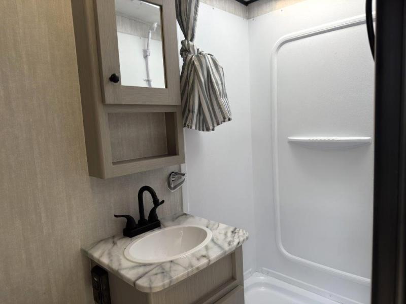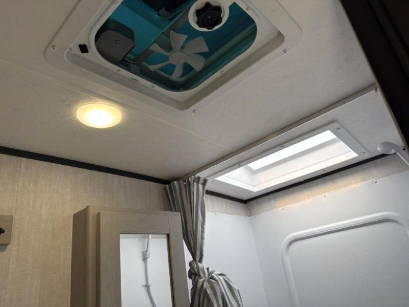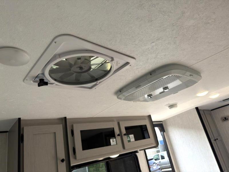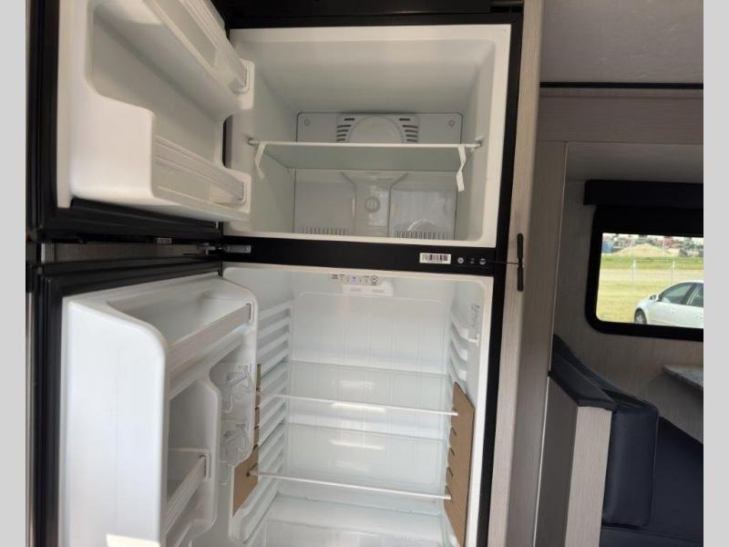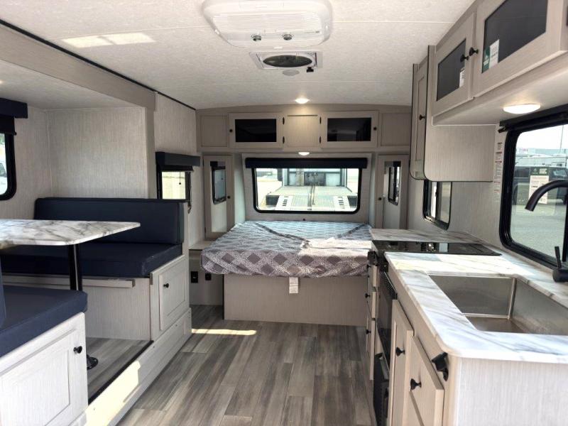 Whether you camp with friends, family or solo, this trailer gives you space for all with a spacious main living and kitchen area thanks to the booth dinette slide! The rear full bath offers a shower, sink, toilet and a wardrobe so you can get ready in privacy. A two burner cooktop and microwave underneath will let you make meals each day, and the 12V refrigerator will be perfect for perishables. The walk-around queen-size bed provides convenience when getting in and out of bed and there are two wardrobes and overhead cabinets to keep your belongings up and away. The power awning protects you from the elements when relaxing outside, and the exterior pass-through storage gives you a place to stow the outdoor equipment like camping chairs, tables, fishing poles and charcoal.