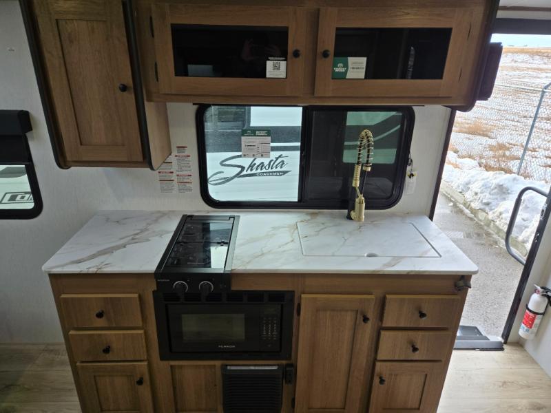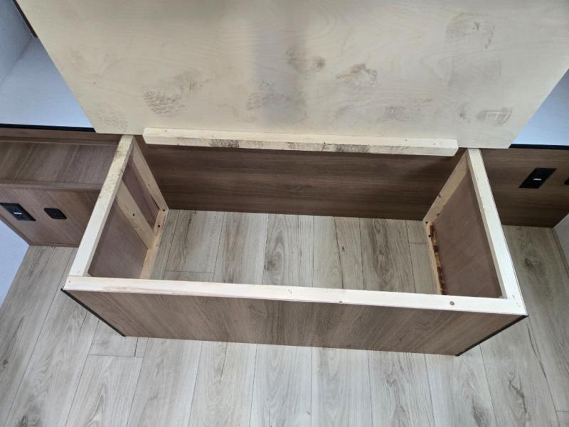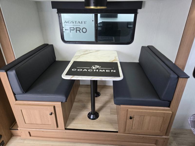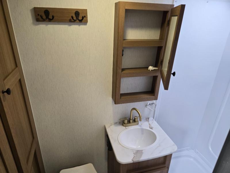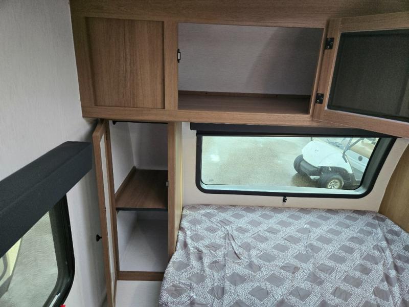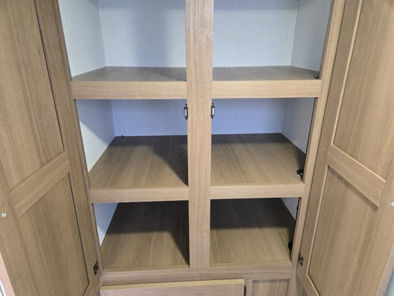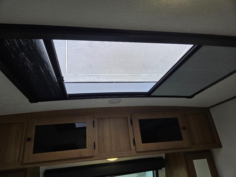 Whether you camp with friends, family or solo, this trailer gives you space for all with a spacious main living and kitchen area thanks to the booth dinette slide! The rear full bath offers a shower, sink, toilet and a wardrobe so you can get ready in privacy. A two-burner cooktop and microwave underneath will let you make meals each day, and the 12V refrigerator will be perfect for perishables. The walk-around queen-size bed provides convenience when getting in and out of bed and there are two wardrobes and overhead cabinets to keep your belongings up and away. The power awning protects you from the elements when relaxing outside, and the exterior pass-through storage gives you a place to stow the outdoor equipment like camping chairs, tables, fishing poles and charcoal.