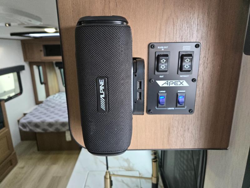 You will find comfort, convenience, and a sturdy construction with each of these Coachmen RV Apex Nano travel trailers! They are held together with an aluma-cage construction, an I-beam chassis, plus vacuum-bonded laminated dual Azdel fiberglass walls for double the protection against the elements. The 400-watt solar panel with a 30 amp control charger is included, along with two 20 lb. LP tanks, a high velocity power roof vent, plus 12V outlets to keep you powered up. More exterior features include a hot/cold shower, four stabilizer jacks, a power awning with LED lighting, and radius thumb latch baggage doors to easily pack and unload your gear. You will love the interior of your Apex Nano with Congoleum residential flooring, one-piece seamless edge countertops, matte black hardware in the galley, and a hand-crafted wood medicine cabinet in the bath.