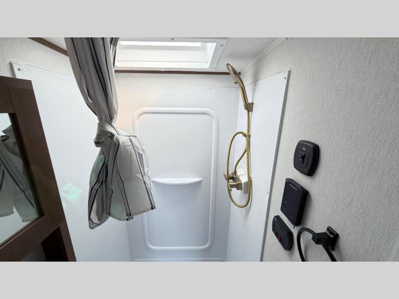 You will find comfort, convenience, and a sturdy construction with each of these Coachmen RV Apex Nano travel trailers! They are held together with an aluma-cage construction, an I-beam chassis, plus vacuum-bonded laminated dual Azdel fiberglass walls for double the protection against the elements. The 200-watt solar panel with a 30 amp control charger is included within the Off-Grid Package, along with two 20 lb. LP tanks, a high velocity power roof vent, plus 12V outlets to keep you powered up. More exterior feature include a hot/cold shower, four stabilizer jacks, a power awning with LED lighting, and magnetic baggage door catches to easily pack and unload your gear. You will love the interior of your Apex Nano with Congoleum residential flooring, one-piece seamless edge countertops, matte black hardware in the galley, and a hand-crafted wood medicine cabinet in the bath.