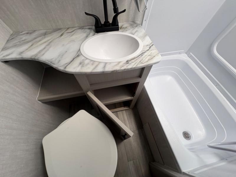 Full Bathroom – The rear bath includes a shower, toilet, and vanity with storage, offering comfort and privacy without sacrificing space.