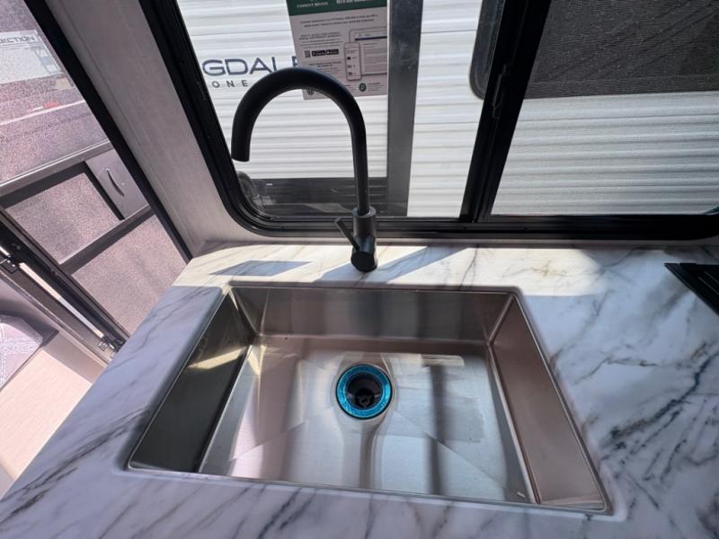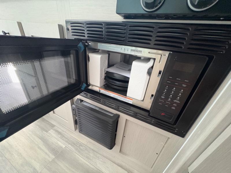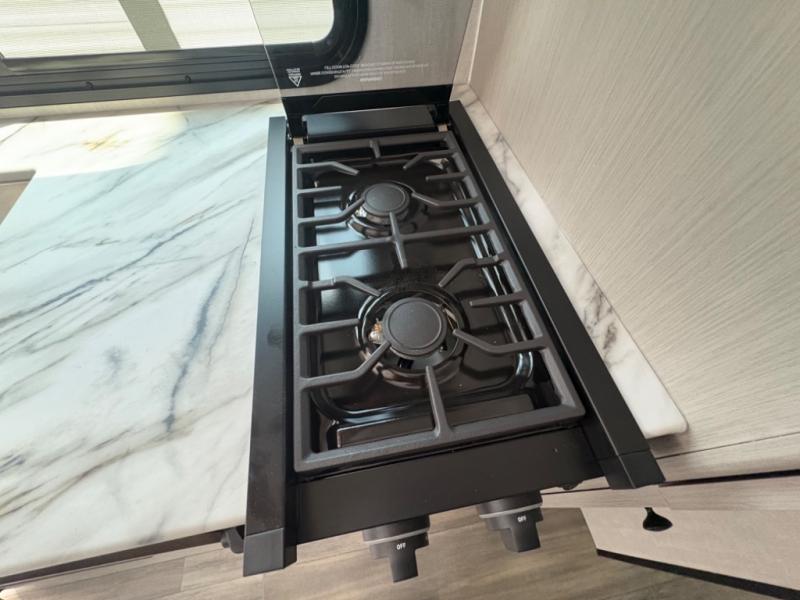 Fully Equipped Kitchen – Prepare meals on the go with a two-burner cooktop, microwave, refrigerator, and deep-basin sink. Ample counter space and cabinetry make cooking convenient and organized, whether it’s a quick breakfast or a hearty dinner.