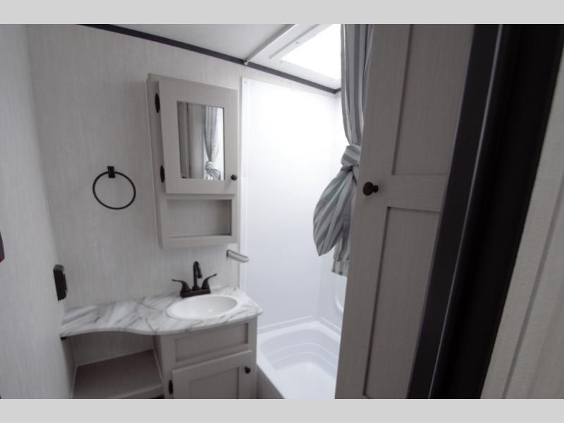 Front Queen Bed, Rear Corner Bathroom, Bunks, Outside Camp Kitchen - Campers Inn RV of Louisville 812-282-7718