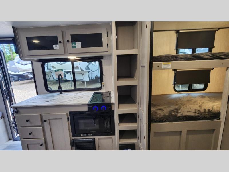This Unit Includes $7,808 in Options Featuring a Booth Dinette; Double Over Double Bunk Beds; Queen-Size Murphy Bed; Exterior Camp Kitchen; 200W Solar Panel; Pass-Through Storage!