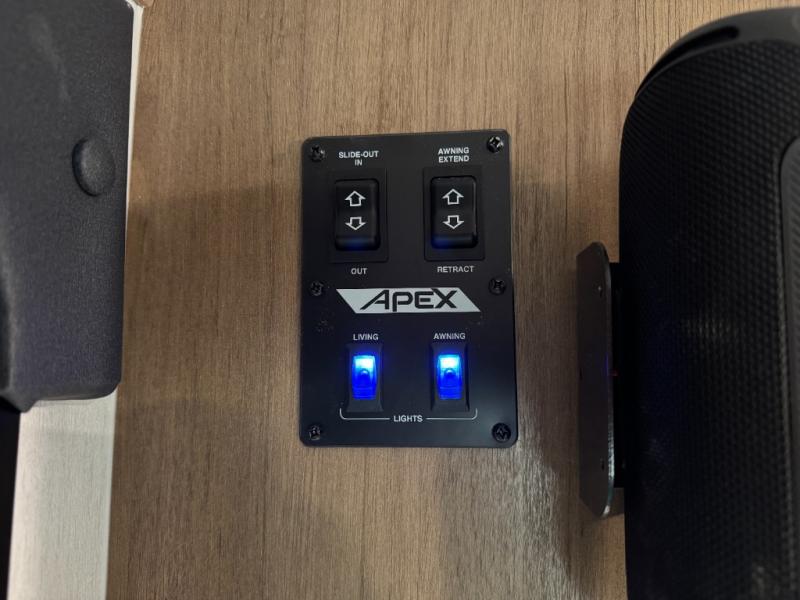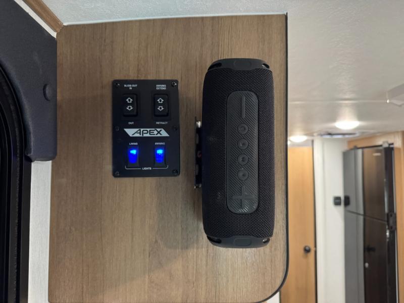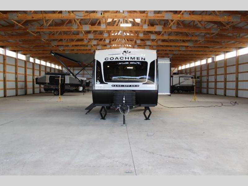 You will find comfort, convenience, and a sturdy construction with each of these Coachmen RV Apex Nano travel trailers! They are held together with an aluma-cage construction, an I-beam chassis, plus vacuum-bonded laminated dual Azdel fiberglass walls for double the protection against the elements. The 400-watt solar panel with a 30 amp control charger is included, along with two 20 lb. LP tanks, a high velocity power roof vent, plus 12V outlets to keep you powered up. More exterior features include a hot/cold shower, four stabilizer jacks, a power awning with LED lighting, and radius thumb latch baggage doors to easily pack and unload your gear. You will love the interior of your Apex Nano with Congoleum residential flooring, one-piece seamless edge countertops, matte black hardware in the galley, and a hand-crafted wood medicine cabinet in the bath.