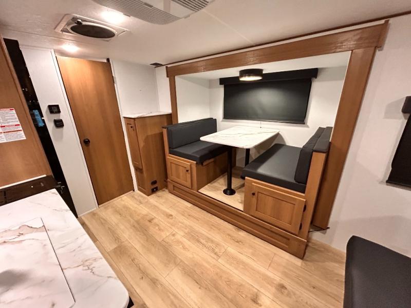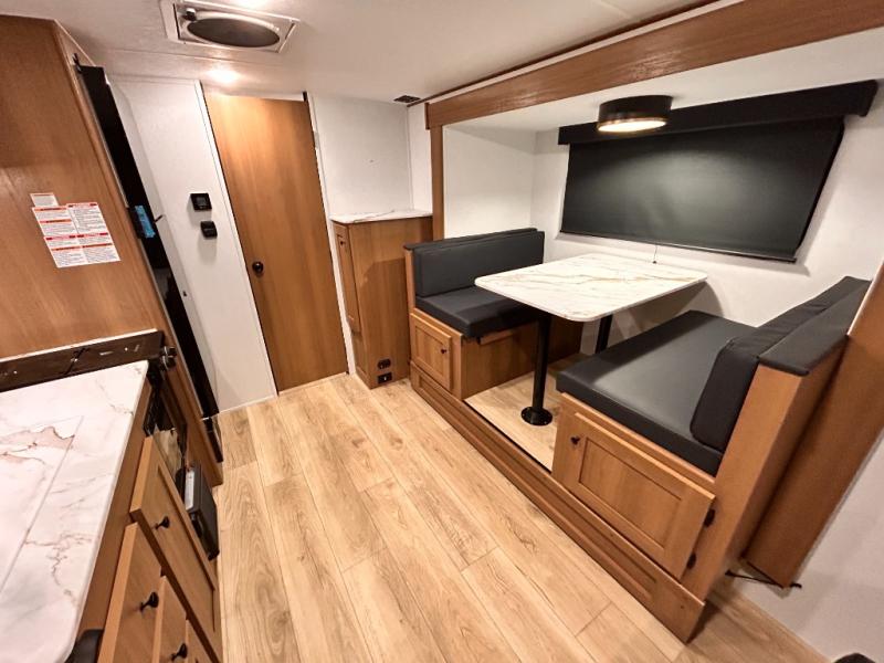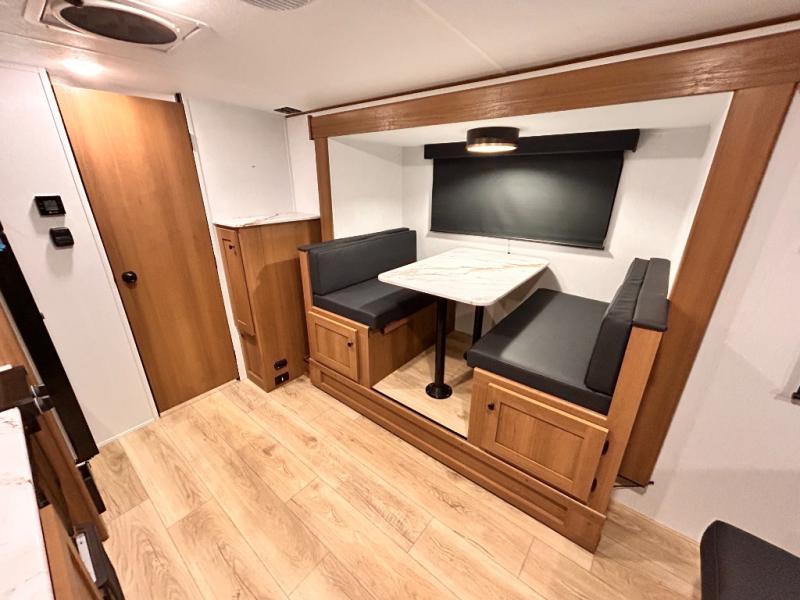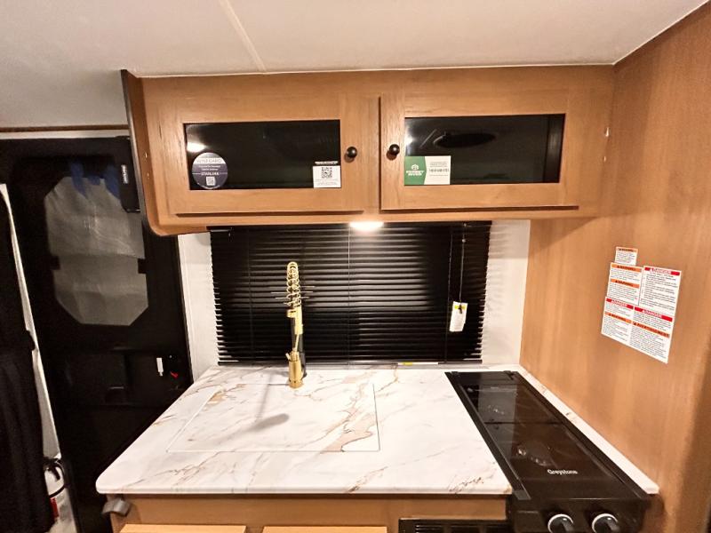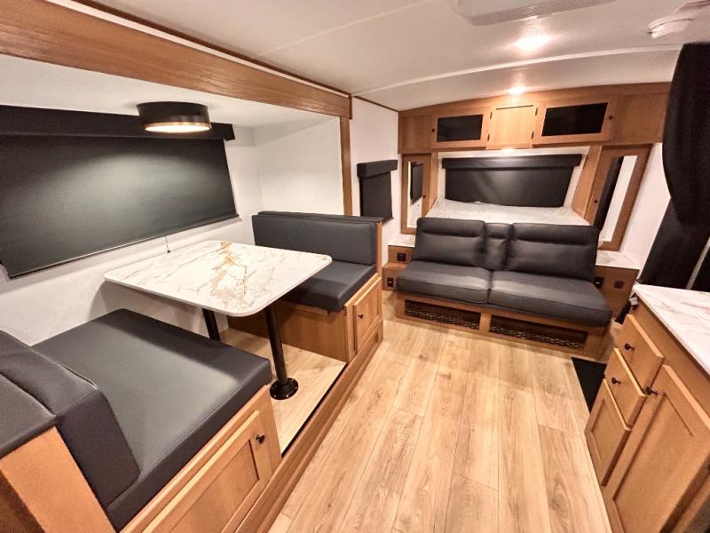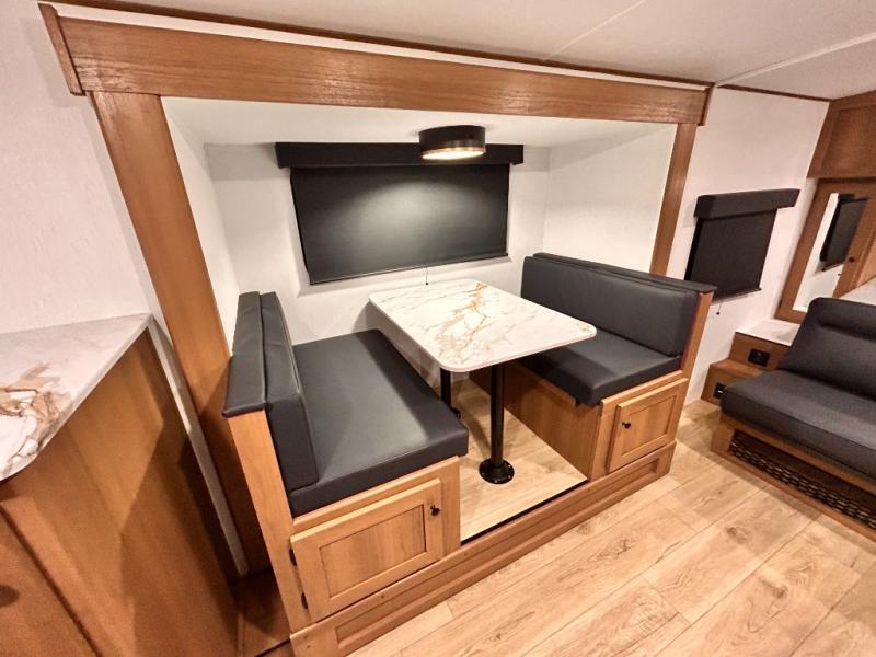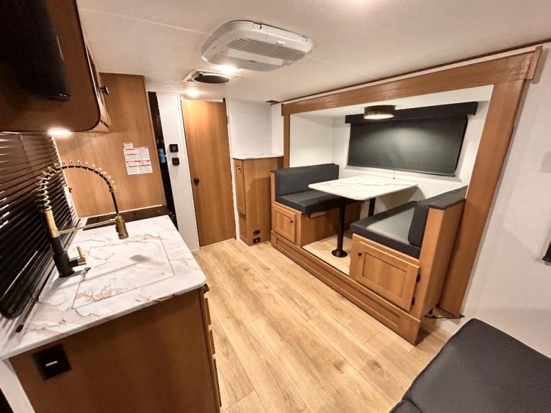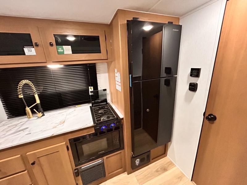 - DOOR, SOLID STEP, MAGNETIC BAGGAGE DOOR CATCH, HARD VALANCES W /ROLLER SHADES, LED INTERIOR LIGHTS, AIR FRYER MICROWAVE, 2-BURNER COOK-TOP, 10 CU FT 12V REFER, SINGLE SINK W/ COVER, ACCESS DOORS UNDER DINETTE, FRAME RECEIVE PREP (DBL AXLE