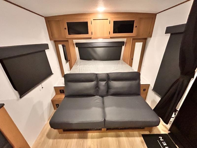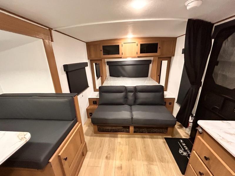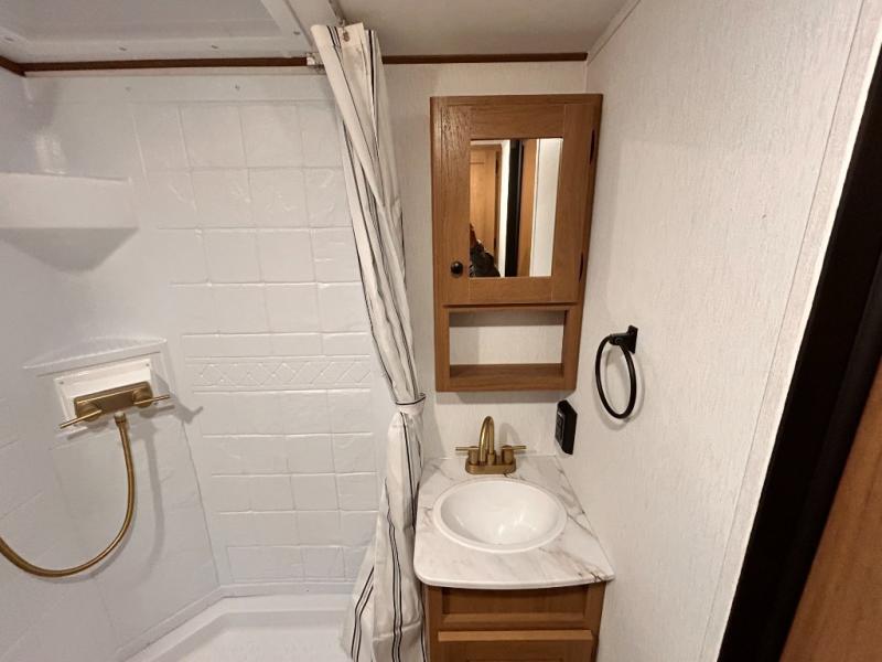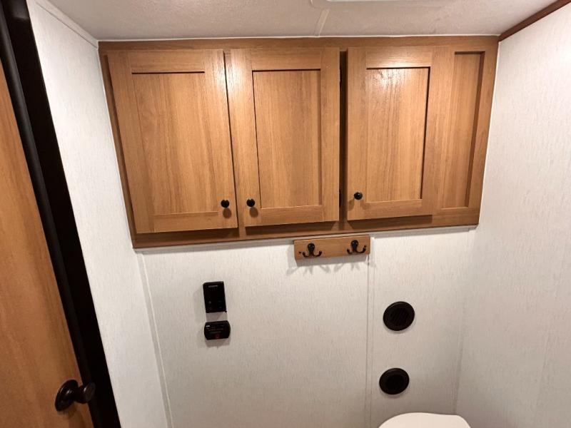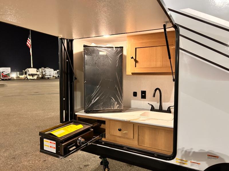 - LED LIGHT & FRONT STONE GUARD, ALUMA- CAGE CONSTRUCTION, ENCLOSED UNDERSELL Y W/ FORCED AIR/HEAT (DBL AXLE), SLIDE SYSTEM (N/A 187RB AND BELOW), ALUMINUM RIMS, LADDER PREP, CAST IRON GRIDDLE, MOUNTED WIRELESS BLUETOOTH SPEAKER, STABILIZER JACKS, LP PORT, TANKLESS WATER HEATER, H/C OUTSIDE SHOWER, BLACK TANK FLUSH, SWING