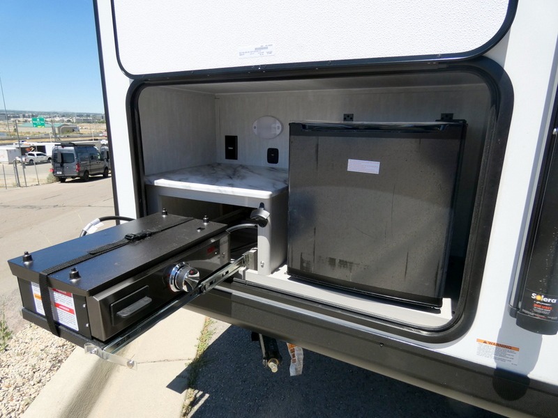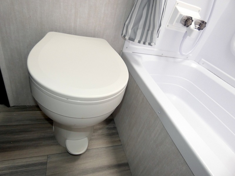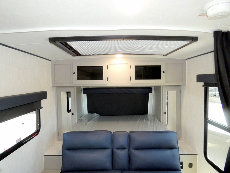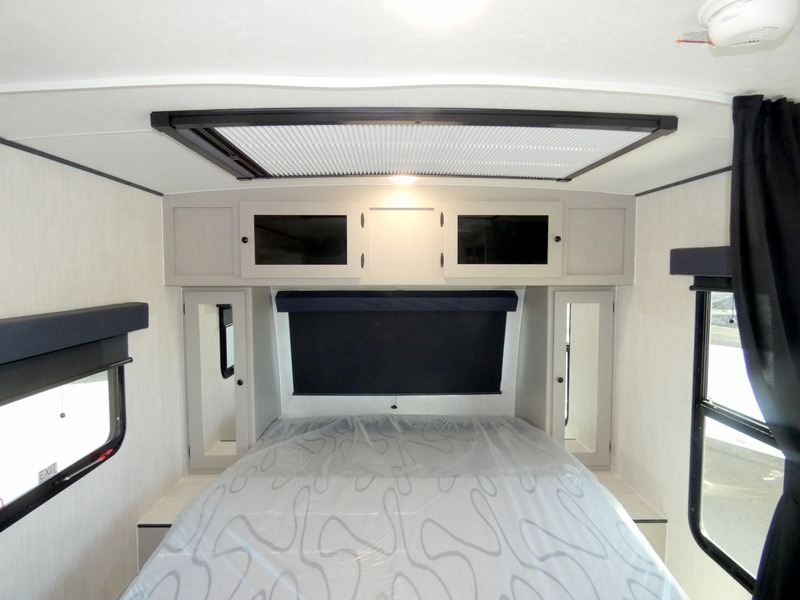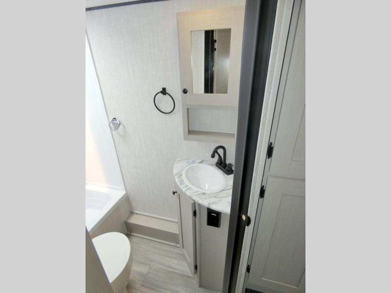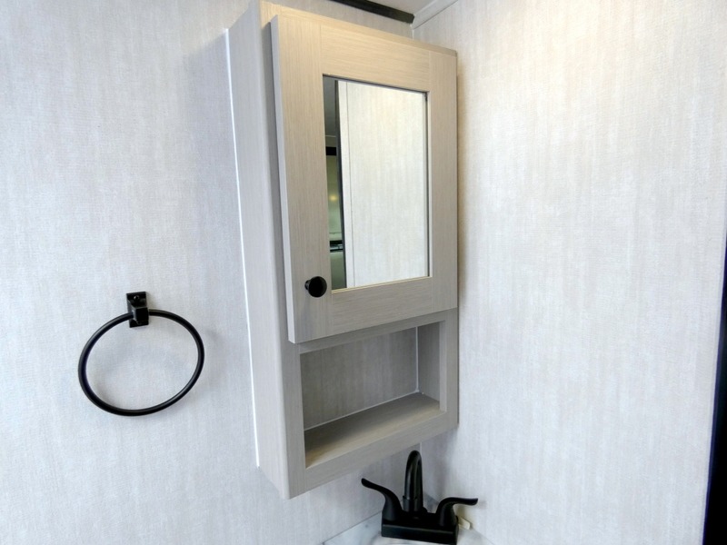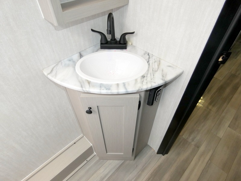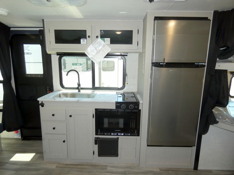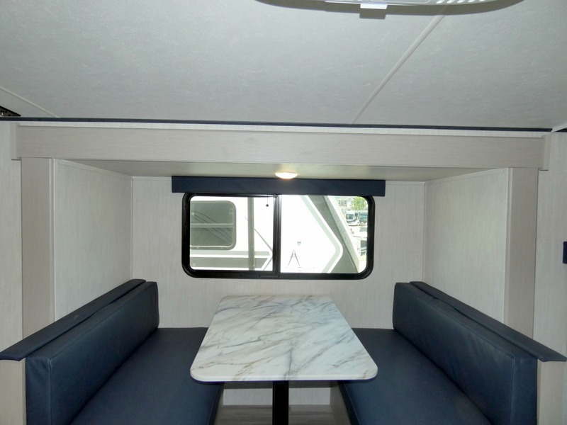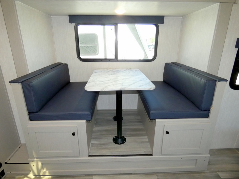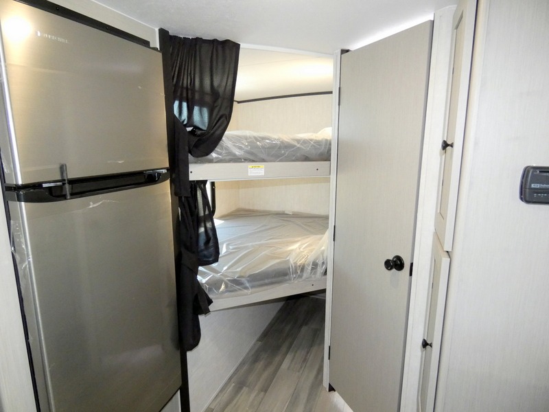 You and a few friends or family members can camp comfortably in this travel trailer! It features a front queen Murphy bed for more versatility. Two others can sleep on the rear corner upper double bed and lower flip up double bed. After you have fried up some eggs on the two burner cooktop and heated up a piece of banana bread in the microwave, you can head to the booth dinette slide to enjoy it. There is even a pantry to store your coffee grounds and snacks. Now that your bellies are full, you can freshen up in the rear corner bathroom with the tub/shower.