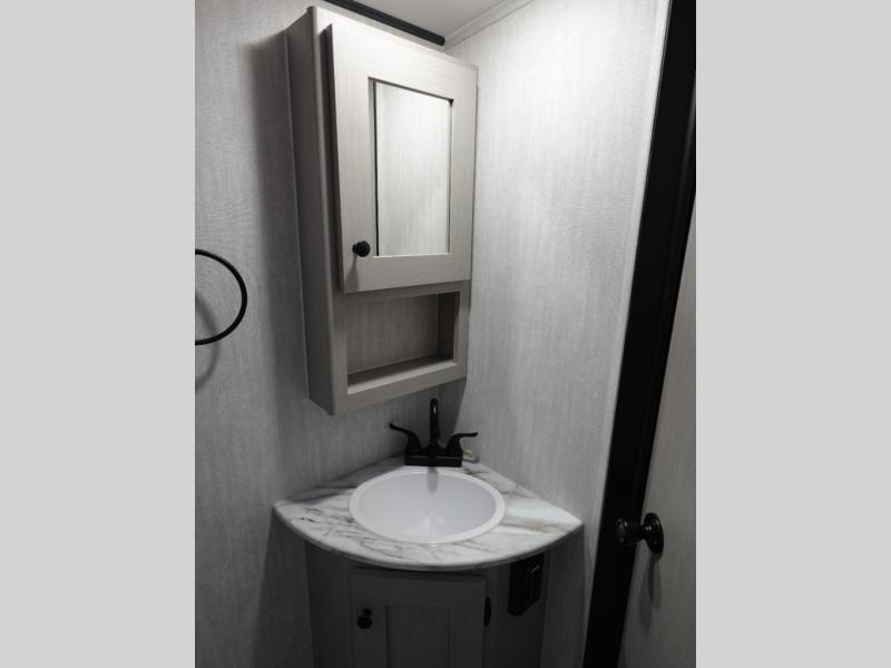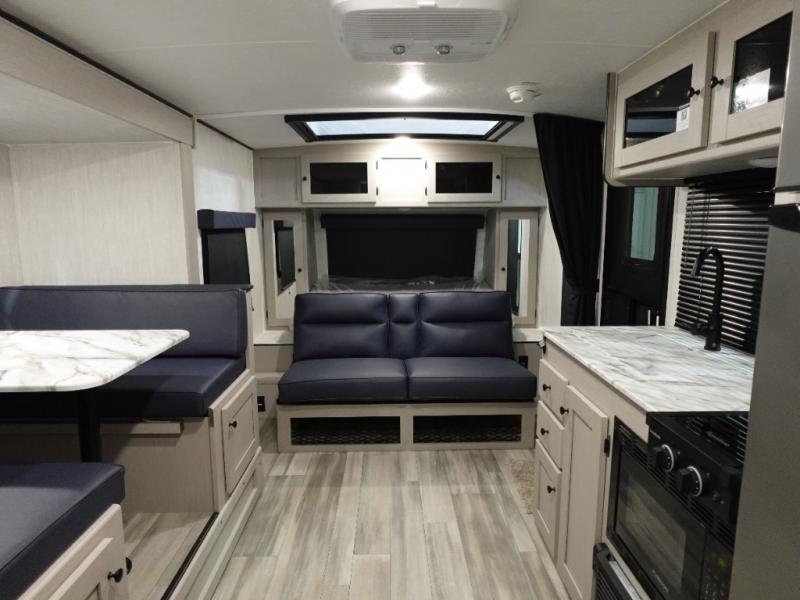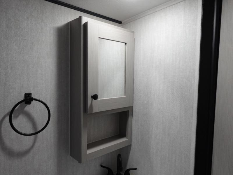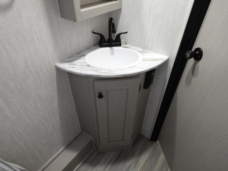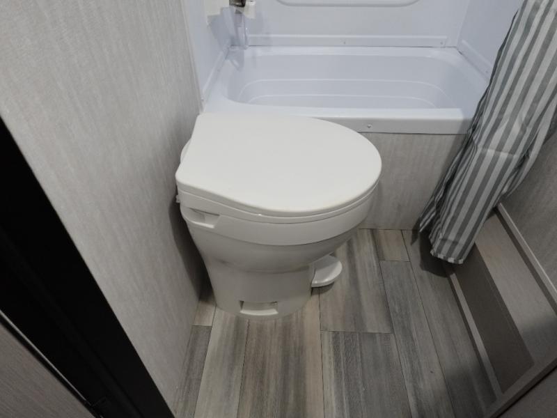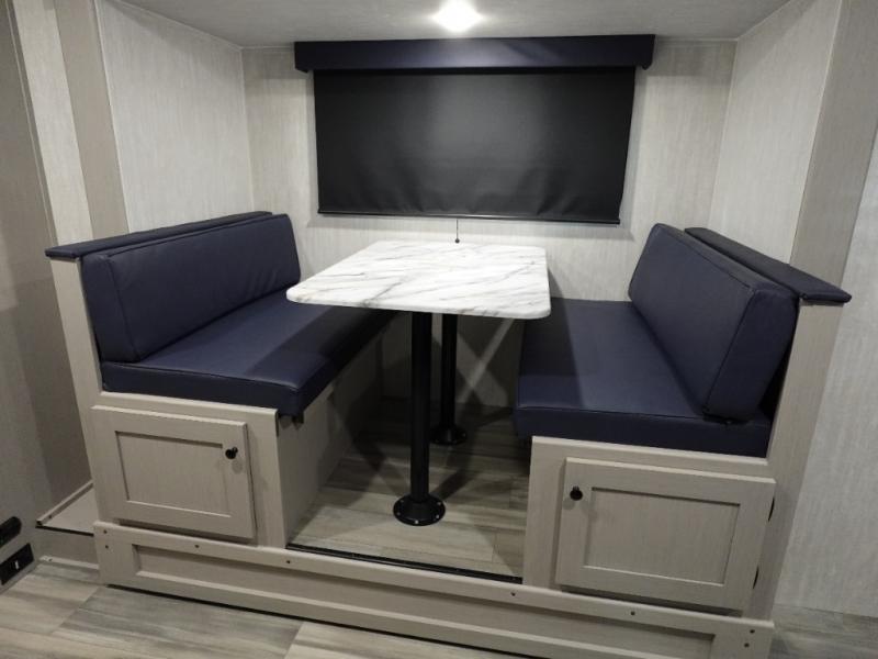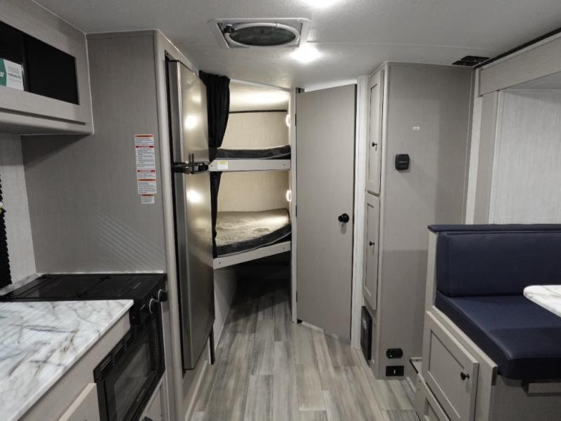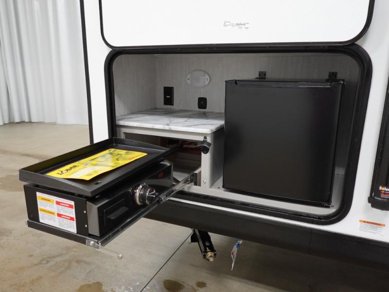You and a few friends or family members can camp comfortably in this travel trailer! It features a front queen Murphy bed for more versatility. Two others can sleep on the rear corner upper double bed and lower flip up double bed. After you have fried up some eggs on the two burner cooktop and heated up a piece of banana bread in the microwave, you can head to the booth dinette slide to enjoy it. There is even a pantry to store your coffee grounds and snacks. Now that your bellies are full, you can freshen up in the rear corner bathroom with the tub/shower.