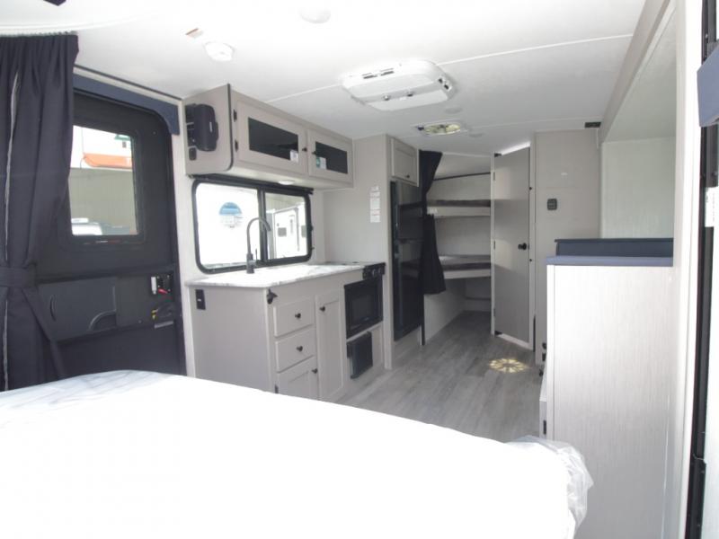 Adventure-ready and family-friendly, the Apex Nano 208BHS features cozy double bunks and an exterior camp kitchen to make every trip fun and flavorful.