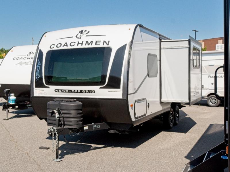 Experience ultimate versatility and off-grid capability with the Coachmen Apex Nano 208BHS, featuring an optional Murphy bed and a 200-watt solar panel system.