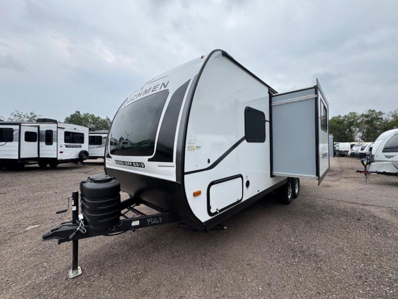 You will find comfort, convenience, and a sturdy construction with each of these Coachmen RV Apex Nano travel trailers! They are held together with an aluma-cage construction, an I-beam chassis, plus vacuum-bonded laminated dual Azdel fiberglass walls for double the protection against the elements. The 200-watt solar panel with a 30 amp control charger is included within the Off-Grid Package, along with two 20 lb. LP tanks, a high velocity power roof vent, plus 12V outlets to keep you powered up. More exterior feature include a hot/cold shower, four stabilizer jacks, a power awning with LED lighting, and magnetic baggage door catches to easily pack and unload your gear. You will love the interior of your Apex Nano with Congoleum residential flooring, one-piece seamless edge countertops, matte black hardware in the galley, and a hand-crafted wood medicine cabinet in the bath.