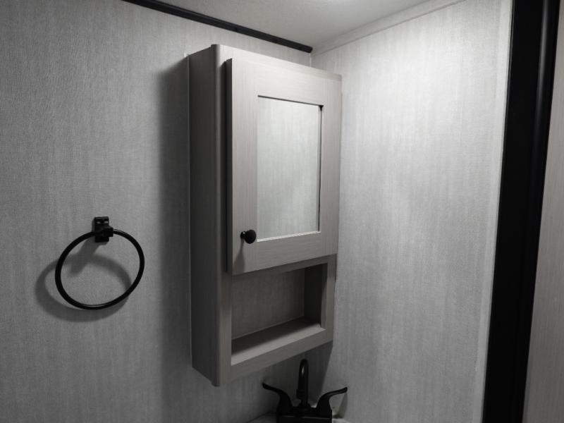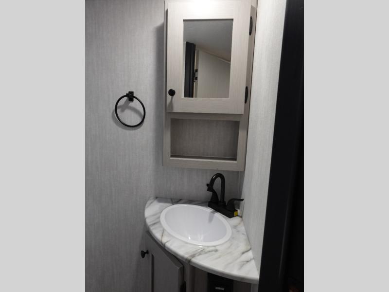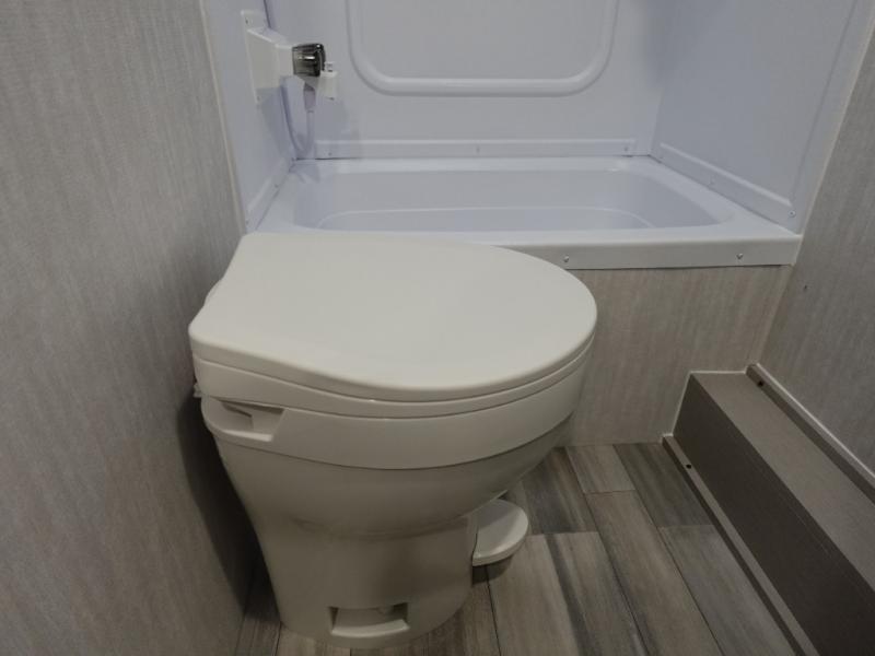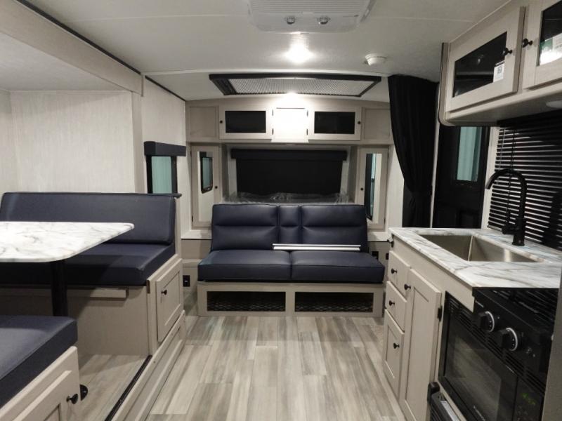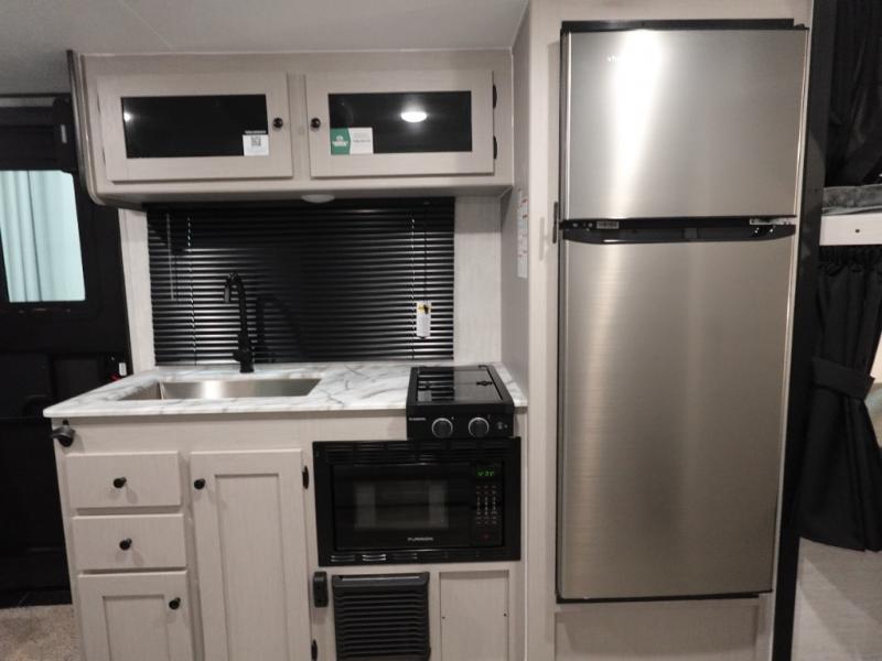 You and a few friends or family members can camp comfortably in this travel trailer! Two others can sleep on the rear corner upper double bed and lower flip up double bed. After you have fried up some eggs on the two burner cooktop and heated up a piece of banana bread in the microwave, you can head to the booth dinette slide to enjoy it. There is even a pantry to store your coffee grounds and snacks. Now that your bellies are full, you can freshen up in the rear corner bathroom with the tub/shower.