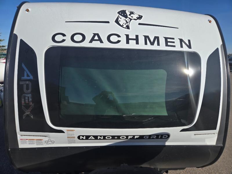 You will find comfort, convenience, and a sturdy construction with each of these Coachmen RV Apex Nano travel trailers! They are held together with an aluma-cage construction, an I-beam chassis, plus vacuum-bonded laminated dual Azdel fiberglass walls for double the protection against the elements. The 400-watt solar panel with a 30 amp control charger is included, along with two 20 lb. LP tanks, a high velocity power roof vent, plus 12V outlets to keep you powered up. More exterior features include a hot/cold shower, four stabilizer jacks, a power awning with LED lighting, and radius thumb latch baggage doors to easily pack and unload your gear. You will love the interior of your Apex Nano with Congoleum residential flooring, one-piece seamless edge countertops, matte black hardware in the galley, and a hand-crafted wood medicine cabinet in the bath.