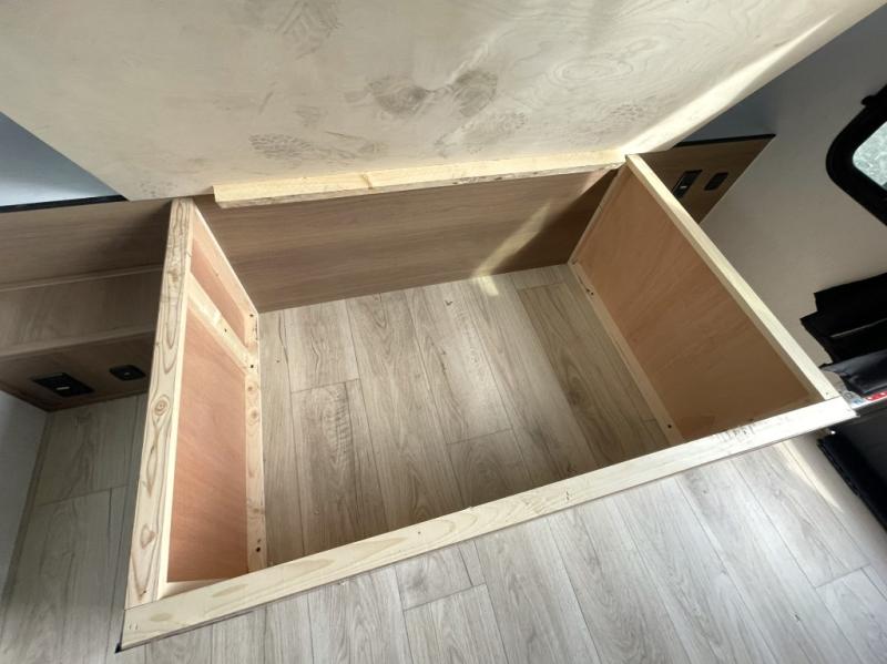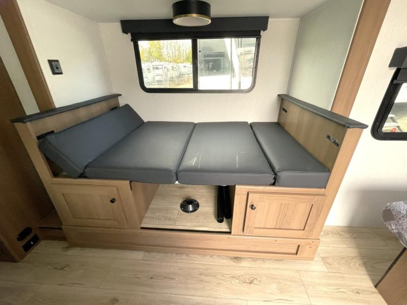 Booth Dinette Slide: Expands the interior and offers a comfortable place for meals or board games. Converts to additional sleeping space if needed.