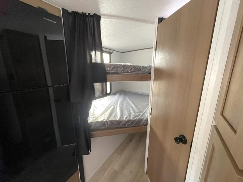 Rear Corner Double Bunks: Perfect for kids or guests. The flip-up bottom bunk allows for additional gear storage.