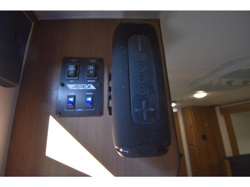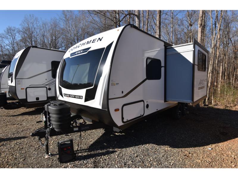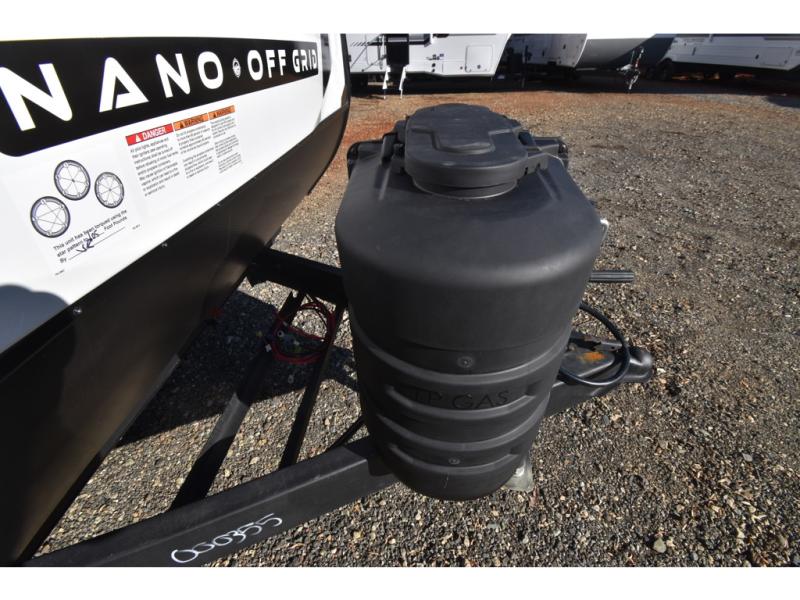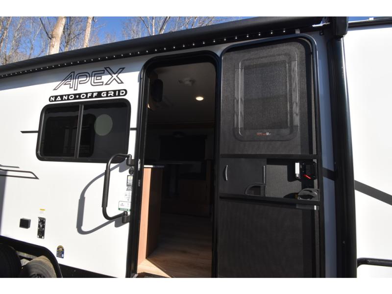 You will find comfort, convenience, and a sturdy construction with each of these Coachmen RV Apex Nano travel trailers! They are held together with an aluma-cage construction, an I-beam chassis, plus vacuum-bonded laminated dual Azdel fiberglass walls for double the protection against the elements. The 400-watt solar panel with a 30 amp control charger is included, along with two 20 lb. LP tanks, a high velocity power roof vent, plus 12V outlets to keep you powered up. More exterior features include a hot/cold shower, four stabilizer jacks, a power awning with LED lighting, and radius thumb latch baggage doors to easily pack and unload your gear. You will love the interior of your Apex Nano with Congoleum residential flooring, one-piece seamless edge countertops, matte black hardware in the galley, and a hand-crafted wood medicine cabinet in the bath.