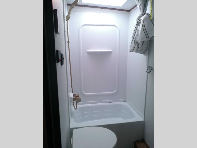 You and a few friends or family members can camp comfortably in this travel trailer! It features a front queen bed with wardrobes on either side to keep your clothes out of the way or you can switch it out for the optional Murphy bed for more versatility. Two others can sleep on the rear corner upper double bed and lower flip up double bed. After you have fried up some eggs on the two burner cooktop and heated up a piece of banana bread in the microwave, you can head to the booth dinette slide to enjoy it. There is even a pantry to store your coffee grounds and snacks. Now that your bellies are full, you can freshen up in the rear corner bathroom with the tub/shower.