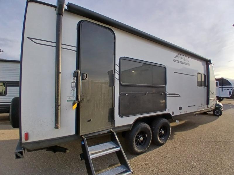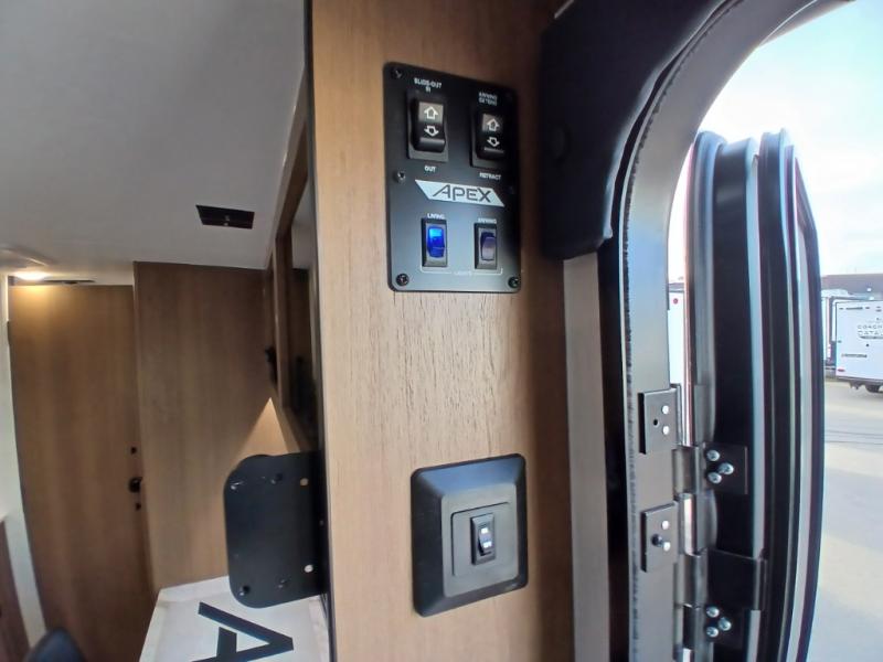 You will find comfort, convenience, and a sturdy construction with each of these Coachmen RV Apex Nano travel trailers! They are held together with an aluma-cage construction, an I-beam chassis, plus vacuum-bonded laminated dual Azdel fiberglass walls for double the protection against the elements. The 400-watt solar panel with a 30 amp control charger is included, along with two 20 lb. LP tanks, a high velocity power roof vent, plus 12V outlets to keep you powered up. More exterior features include a hot/cold shower, four stabilizer jacks, a power awning with LED lighting, and radius thumb latch baggage doors to easily pack and unload your gear. You will love the interior of your Apex Nano with Congoleum residential flooring, one-piece seamless edge countertops, matte black hardware in the galley, and a hand-crafted wood medicine cabinet in the bath.