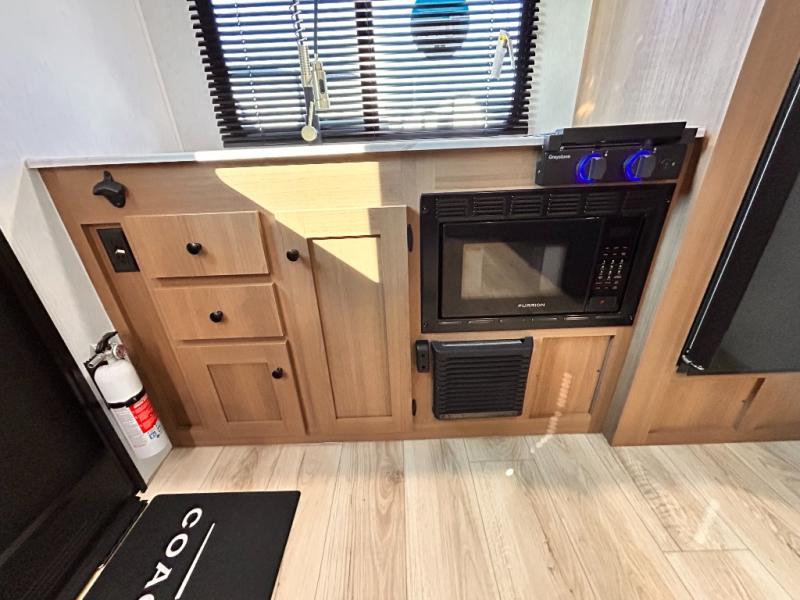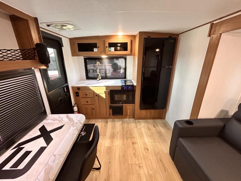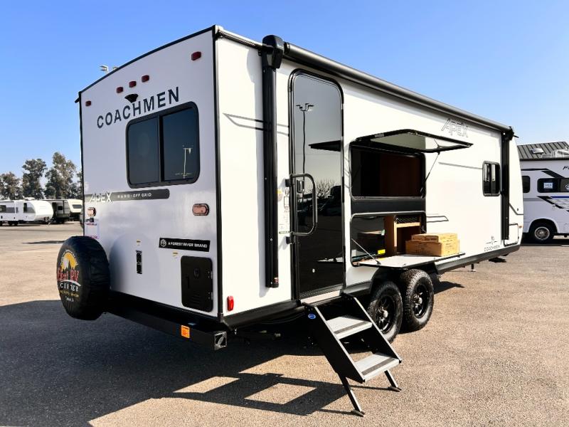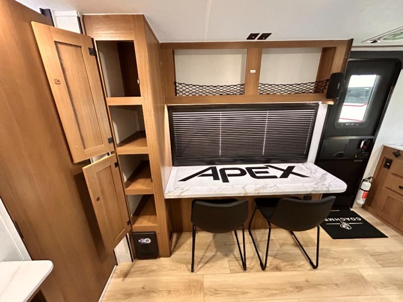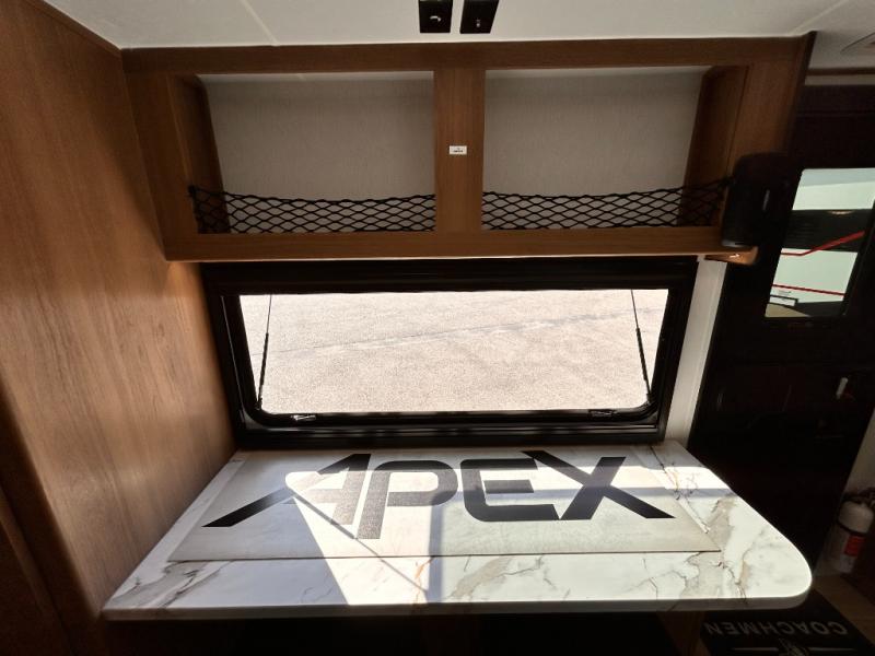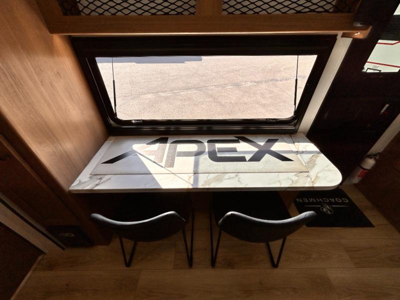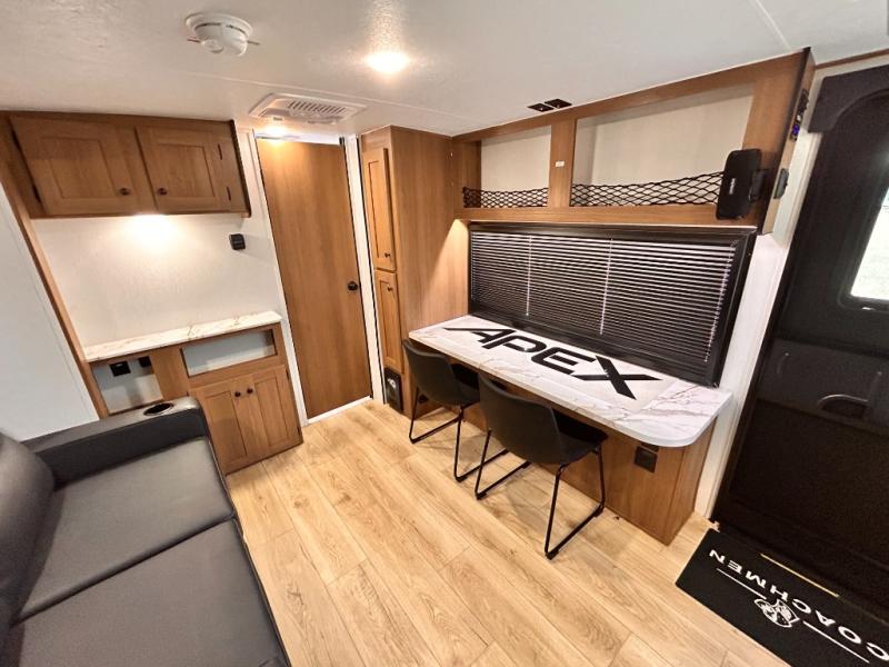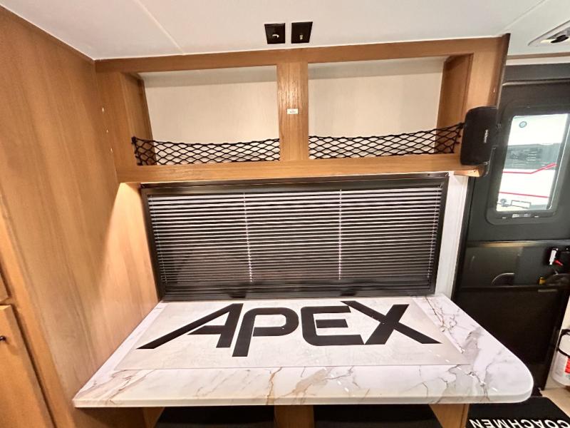 - APEX NANO PACKAGE VACUUM-BONDED LAMINATED AZDEL FIBERGLASS SIDEWALLS, REAR WALL, AND CROWNED ROOF, LAMINATED ALUMINUM FRAME FLOOR, FIBERGLASS FRONT CAP W/ WINDOW, LED LIGHT & FRONT STONE GUARD, ALUMA-CAGE CONSTRUCTION, ENCLOSED UNDERBELLY W/ FORCED AIR/HEAT (DBL AXLE), SLIDE SYSTEM (N/A 187RB AND BELOW), ALUMINUM RIMS, LADDER PREP, CAST IRON GRIDDLE, MOUNTED WIRELESS BLUETOOTH SPEAKER, STABILIZER JACKS, LP PORT, TANKLESS WATER HEATER, H/C OUTSIDE SHOWER, BLACK TANK FLUSH, SWING AWAY ASSIST HANDLE, FRICTION HINGE ENTRY DOOR, SOLID STEP, MAGNETIC BAGGAGE DOOR CATCH, HARD VALANCES W / ROLLER SHADES, LED INTERIOR LIGHTS, AIR FRYER MICROWAVE, 2- BURNER COOK-TOP, 10 CU FT 12V REFER, SINGLE SINK W/ COVER, ACCESS DOORS UNDER DINETTE, FRAME RECEIVE PREP (DBL AXLE ONLY), DIGITAL TV ANTENNA W/ CABLE CONNECTION, SHOWER/TUB SURROUND, SKYLIGHT IN BATH, MATTRESS W/ COVER, B/U CAMERA MOUNT, BATTERY DISCONNECT SWITCH