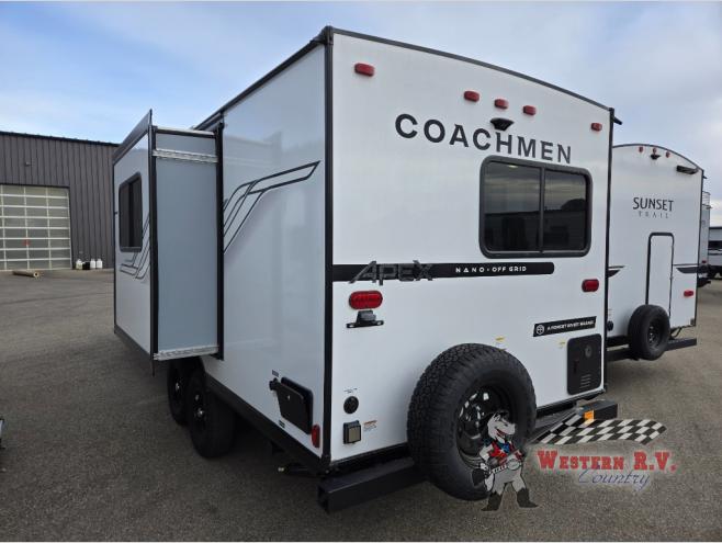 You will find comfort, convenience, and a sturdy construction with each of these Coachmen RV Apex Nano travel trailers! They are held together with an aluma-cage construction, an I-beam chassis, plus vacuum-bonded laminated dual Azdel fiberglass walls for double the protection against the elements. The 400-watt solar panel with a 30-amp control charger is included, along with two 20 lb. LP tanks, a high velocity power roof vent, plus 12V outlets to keep you powered up. More exterior features include a hot/cold shower, four stabilizer jacks, a power awning with LED lighting, and radius thumb latch baggage doors to easily pack and unload your gear. You will love the interior of your Apex Nano with Congoleum residential flooring, one-piece seamless edge countertops, matte black hardware in the galley, and a hand-crafted wood medicine cabinet in the bath.