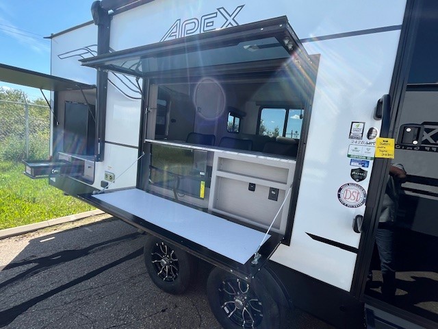 Lightweight living and camping is found with the Apex Ultra-Lite travel trailers by Coachmen. These eco-friendly units are made to last thanks to the Azdel composite sidewalls, the laminated aluminum floor, and the vacuum-bonded laminated crowned roof. Easy lube axles make towing easier than ever, plus there is a friction hinge entrance door, a 200-watt solar panel with a 30 Amp control charger, and slam latch baggage door catches for easy unloading. Some of the interior comforts you'll fall in love with are the one-piece seamless edge countertops, the hard valances with night shades, the matte black hardware, and the Casino Bisque cabinetry. The Apex Ultra-Lite trailers also include a USB charge station, plus a digital TV antenna with cable hook-ups and Wi-Fi capability for the option to stay connected as you camp!