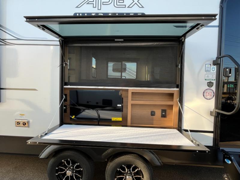 Lightweight living and camping is found with the Apex Ultra-Lite travel trailers by Coachmen. These eco-friendly units are made to last thanks to the Azdel composite sidewalls, the laminated aluminum floor, and the vacuum-bonded laminated trussed roof. Super lube axles make towing easier than ever, plus there is a friction hinge entrance door, a 200-watt solar panel with a 30 Amp control charger, and slam latch baggage door catches for easy unloading. Some of the interior comforts you'll fall in love with are the one-piece seamless edge countertops, the hard valances with roller shades, the matte black hardware, and the Casino Bisque cabinetry. The Apex Ultra-Lite trailers also include a USB charge station, plus a digital TV antenna with cable hook-ups and Wi-Fi capability for the option to stay connected as you camp!