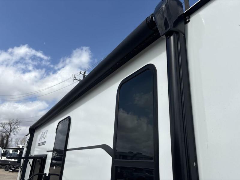Lightweight living and camping is found with the Apex Ultra-Lite travel trailers by Coachmen. These eco-friendly units are made to last thanks to the Azdel composite sidewalls, the laminated aluminum floor, and the vacuum-bonded laminated trussed roof. There is a friction hinge entrance door, a 400-watt solar panel with a 30 Amp control charger, and slam latch baggage door catches for easy unloading. Some of the interior comforts you'll fall in love with are the one-piece seamless edge countertops, the hard valances with roller shades, and the Sorrento cabinetry. The Apex Ultra-Lite trailers also include USB/USB-C chargers. And when the adventure’s over, the hot/cold outside shower makes it easy to rinse off sandy feet, muddy gear, or pets before you ever step back inside.