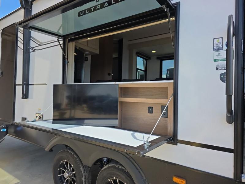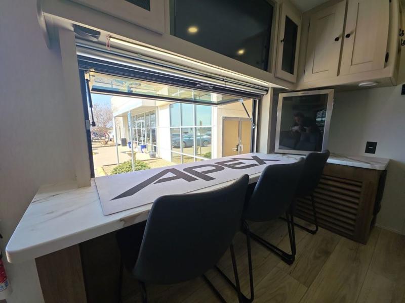 Lightweight living and camping is found with the Apex Ultra-Lite travel trailers by Coachmen. These eco-friendly units are made to last thanks to the Azdel composite sidewalls, the laminated aluminum floor, and the vacuum-bonded laminated trussed roof. There is a friction hinge entrance door, a 400-watt solar panel with a 30 Amp control charger, and slam latch baggage door catches for easy unloading. Some of the interior comforts you'll fall in love with are the one-piece seamless edge countertops, the hard valances with roller shades, and the Sorrento cabinetry. The Apex Ultra-Lite trailers also include USB/USB-C chargers. And when the adventure’s over, the hot/cold outside shower makes it easy to rinse off sandy feet, muddy gear, or pets before you ever step back inside.