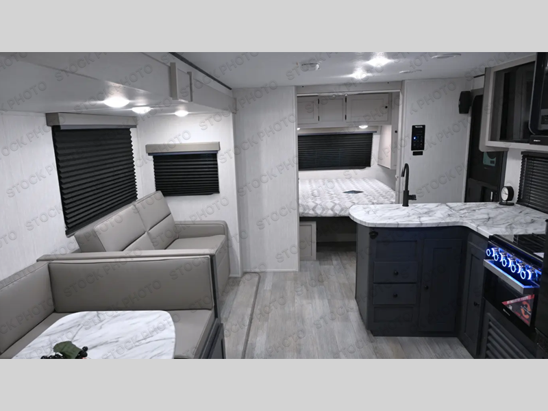 Are you looking for a travel trailer with more interior space and a larger sleeping capacity? This Apex Ultra-Lite trailer may just be the one you've been looking for! Your guests can claim the rear bunkhouse with triple bunks, a sofa, and an entertainment center, while you take the queen bed in the front private bedroom. Everyone can meet in the middle living area and kitchen that includes a sofa and U-shaped dinette, all the kitchen amenities to cook meals, plus a flat screen TV for movie nights. The full bath with a 36" x 24" tub will make bath time easy for the kids or if you need to give the dog a bath! And don't overlook the exterior with its outside kitchen and power awning with an LED light!