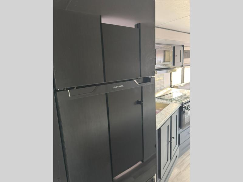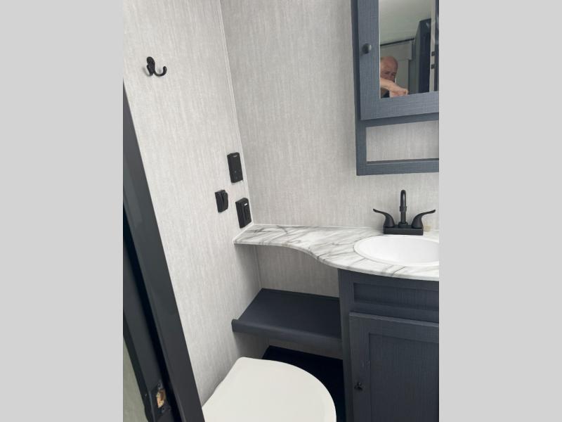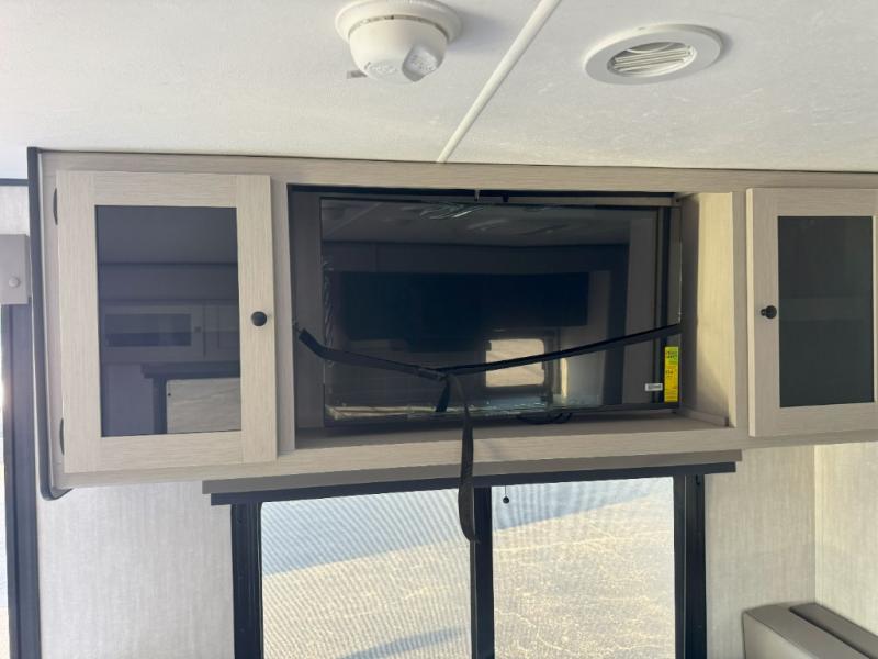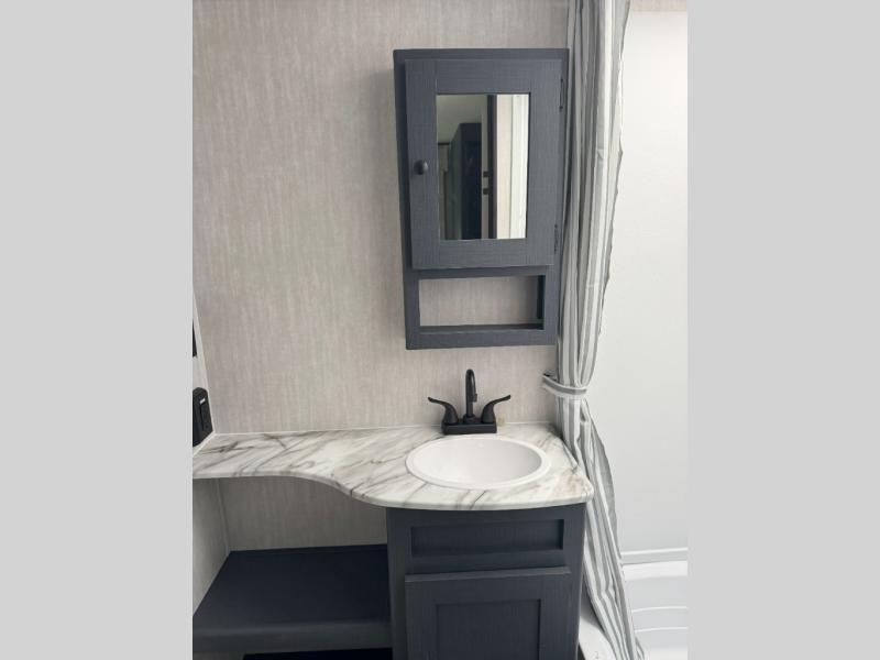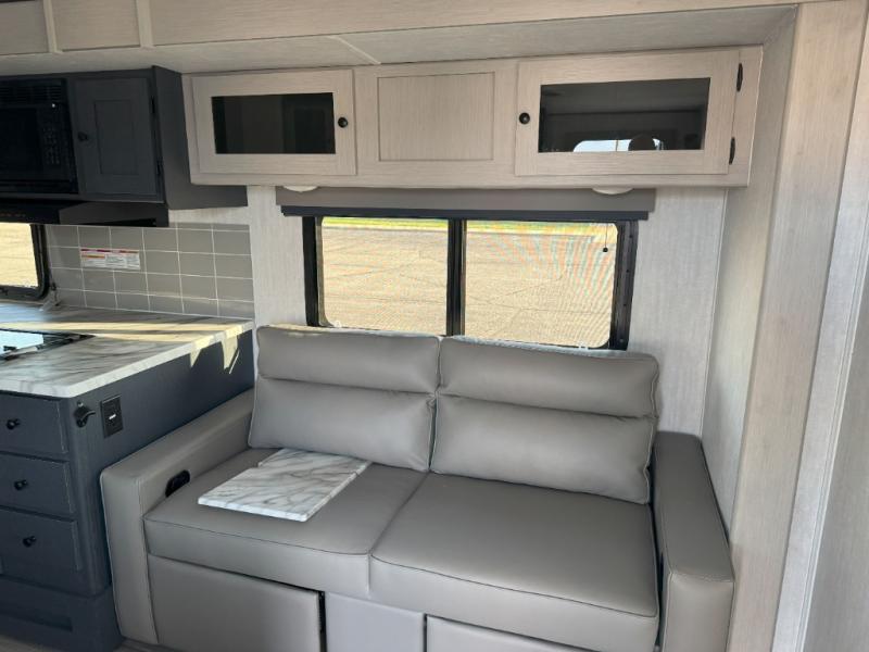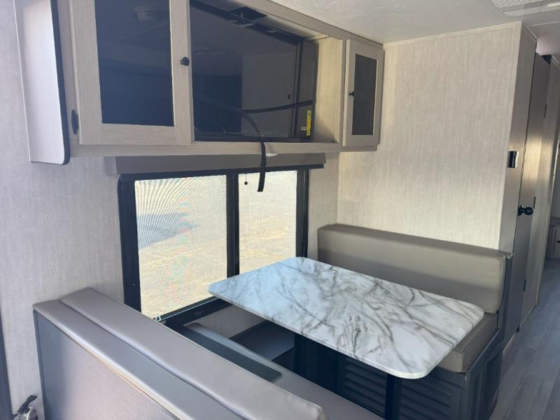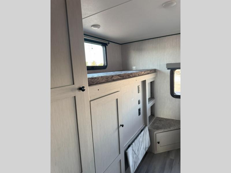What I liked most: Kitchen counter has a large amount of space. Entertainment Center has lots of storage. Dining booth has one storage cabinet. Kitchen area has plenty of storage. Bunkhouse has plenty of storage with 2 large cabinets, 1 small cabinet and 3 drawers.