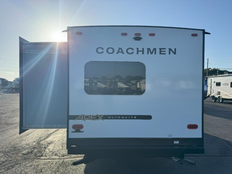 Lightweight living and camping is found with the Apex Ultra-Lite travel trailers by Coachmen. These eco-friendly units are made to last thanks to the Azdel composite sidewalls, the laminated aluminum floor, and the vacuum-bonded laminated crowned roof. Easy lube axles make towing easier than ever, plus there is a friction hinge entrance door, a 200-watt solar panel with a 30 Amp control charger, and slam latch baggage door catches for easy unloading. Some of the interior comforts you'll fall in love with are the one-piece seamless edge countertops, the hard valances with night shades, the matte black hardware, and the Casino Bisque cabinetry. The Apex Ultra-Lite trailers also include a USB charge station, plus a digital TV antenna with cable hook-ups and Wi-Fi capability for the option to stay connected as you camp!