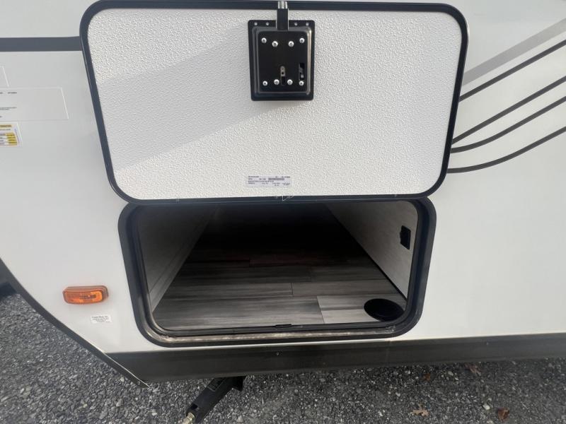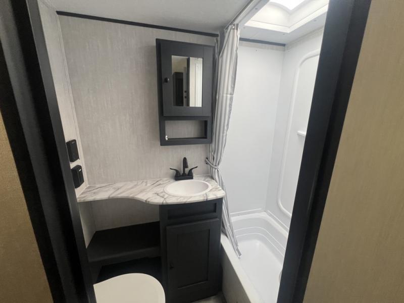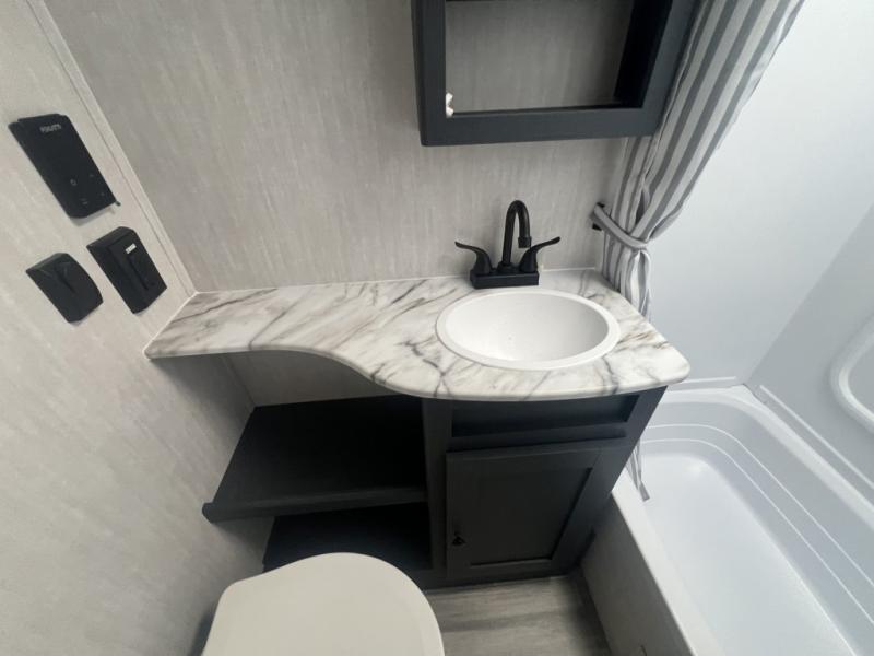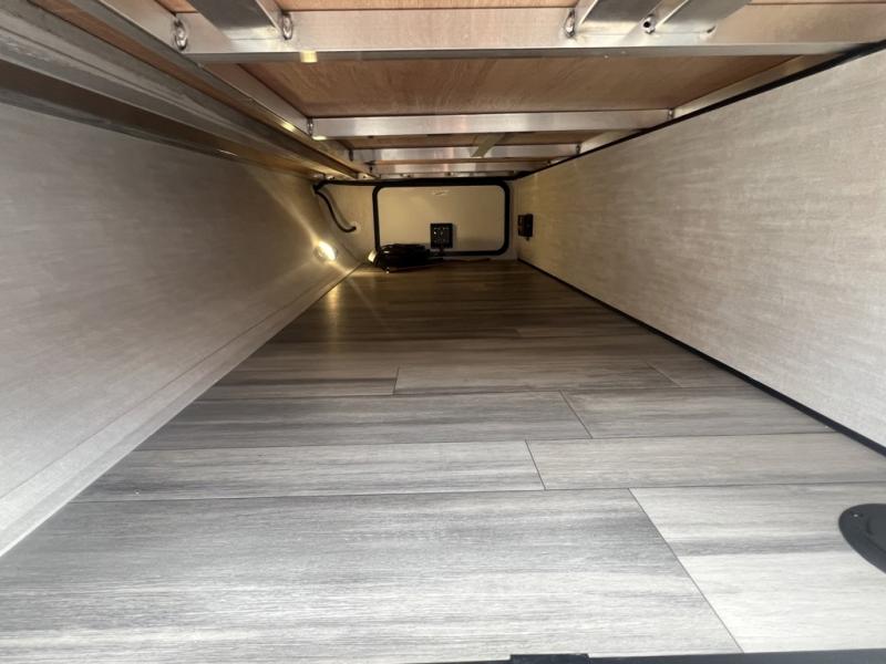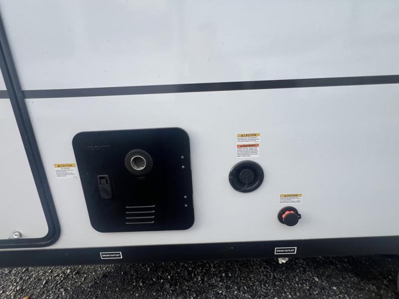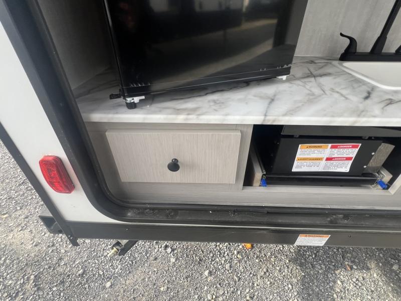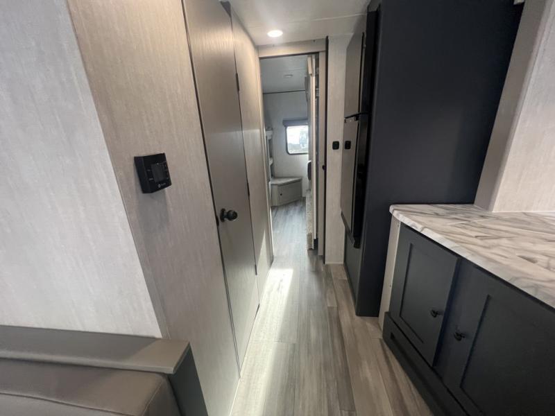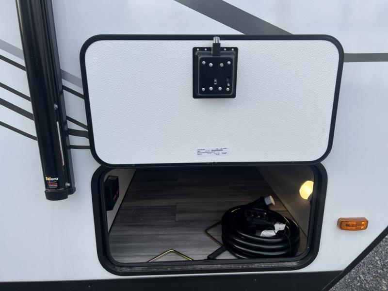 Double slides, a bunkhouse, plus a private bedroom and sleeping for nine make this model ready for anything! There is a private bunkhouse with a slide out futon and an overhead bunk, plus a second bunk for the kids to enjoy. Up front, a queen bed with super storage will provide two a comfortable night's rest in a private bedroom, and any other guests can sleep on the booth dinette and sofa in the main living area. The chef can cook indoors, or outdoors on the outside kitchen, and since there is an 18' power awning with LED lights, you can enjoy a bit of outdoor living space as well!