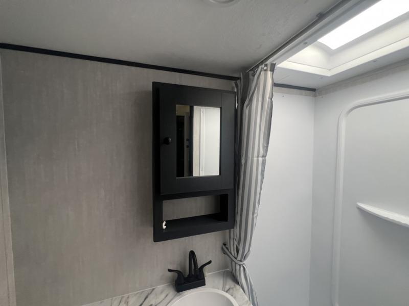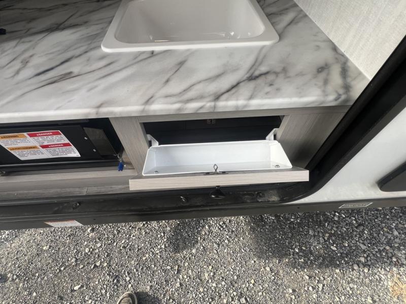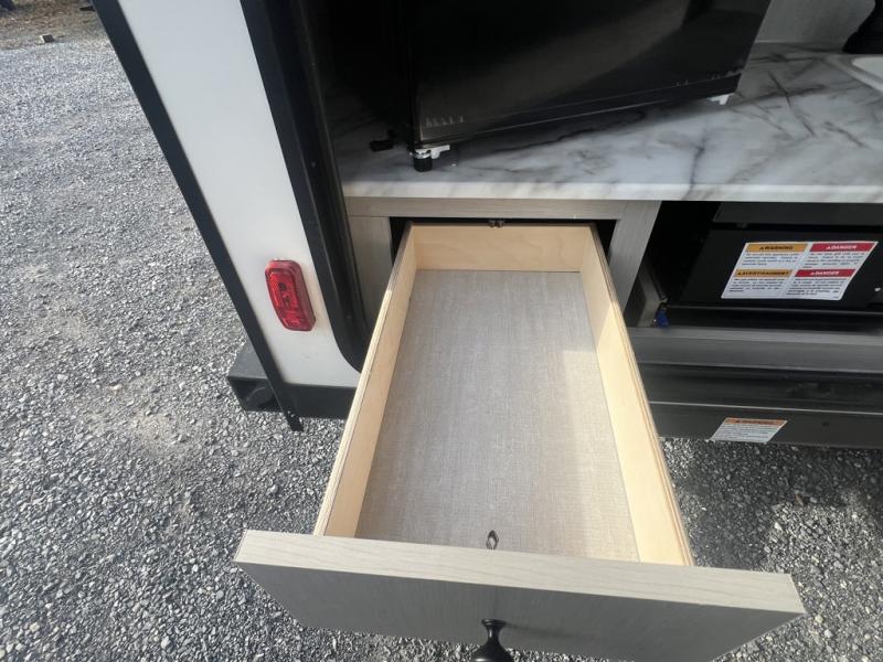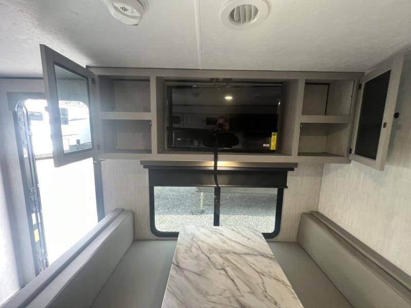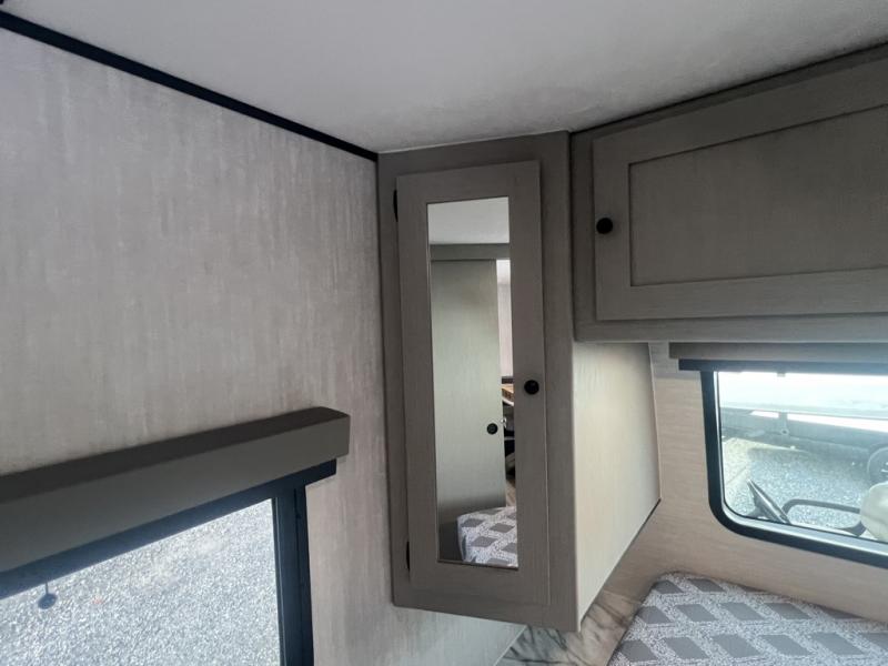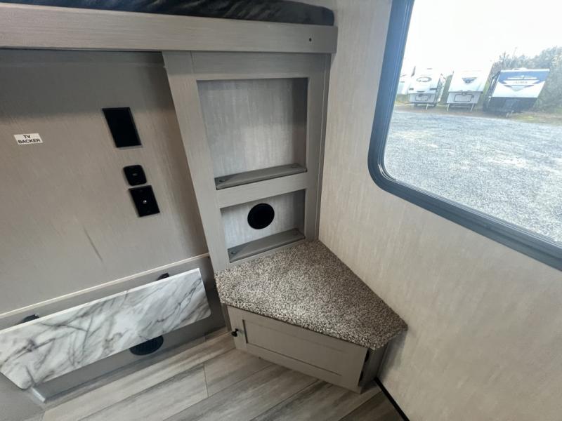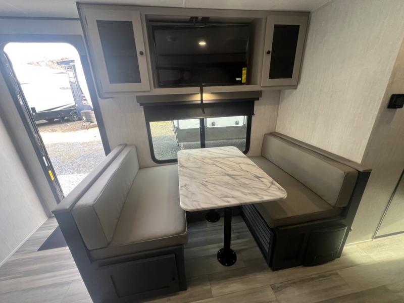 What I liked most: Kitchen counter has a large amount of space. Entertainment Center has lots of storage. Dining booth has one storage cabinet. Kitchen area has plenty of storage. Bunkhouse has plenty of storage with 2 large cabinets, 1 small cabinet and 3 drawers.