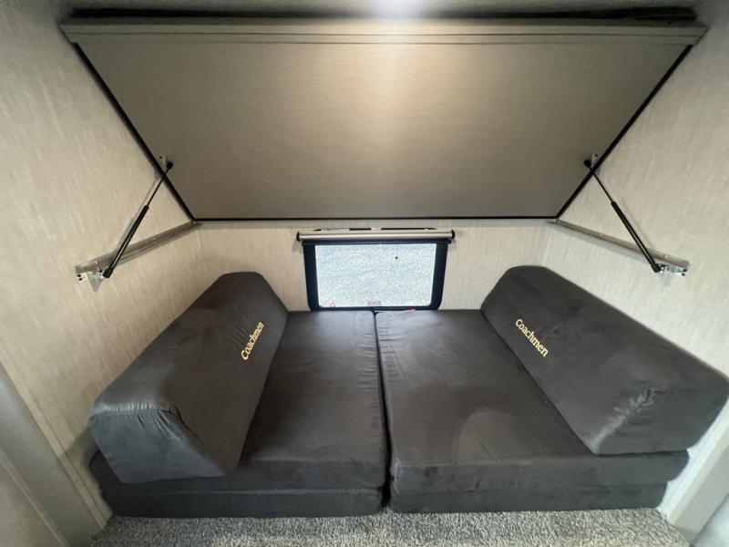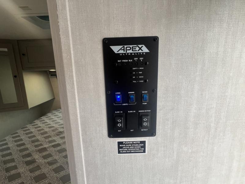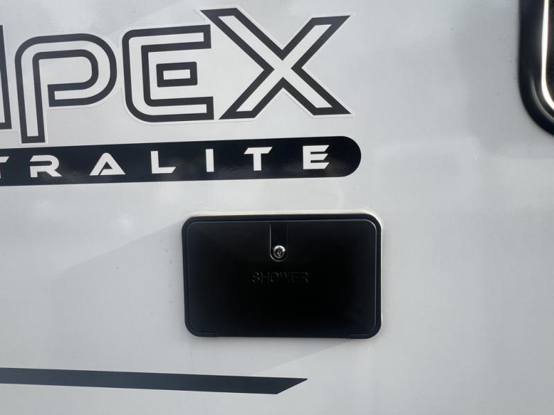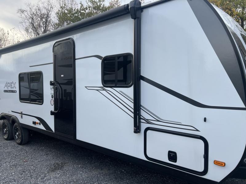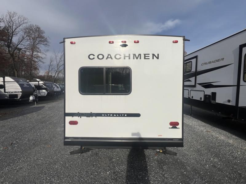 Lightweight living and camping is found with the Apex Ultra-Lite travel trailers by Coachmen. These eco-friendly units are made to last thanks to the Azdel composite sidewalls, the laminated aluminum floor, and the vacuum-bonded laminated trussed roof. Super lube axles make towing easier than ever, plus there is a friction hinge entrance door, a 200-watt solar panel with a 30 Amp control charger, and slam latch baggage door catches for easy unloading. Some of the interior comforts you'll fall in love with are the one-piece seamless edge countertops, the hard valances with roller shades, the matte black hardware, and the Casino Bisque cabinetry. The Apex Ultra-Lite trailers also include a USB charge station, plus a digital TV antenna with cable hook-ups and Wi-Fi capability for the option to stay connected as you camp!