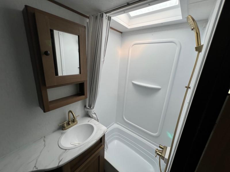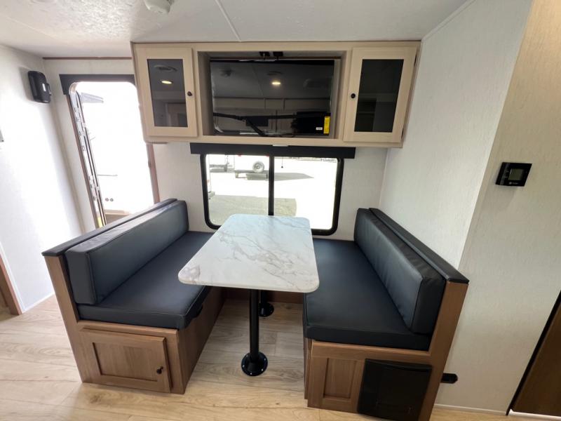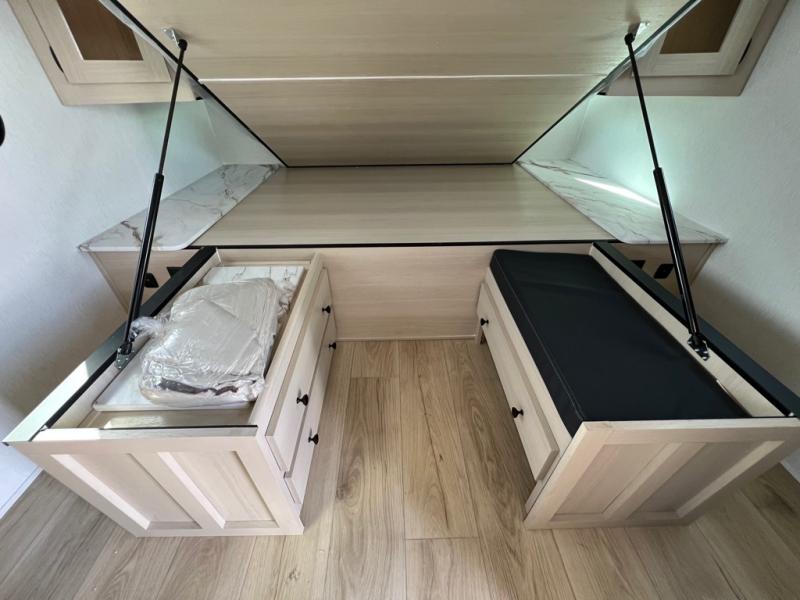 What I liked most: Kitchen counter has a large amount of space. Entertainment Center has lots of storage. Dining booth has one storage cabinet. Kitchen area has plenty of storage. Bunkhouse has plenty of storage with 2 large cabinets, 1 small cabinet and 3 drawers.