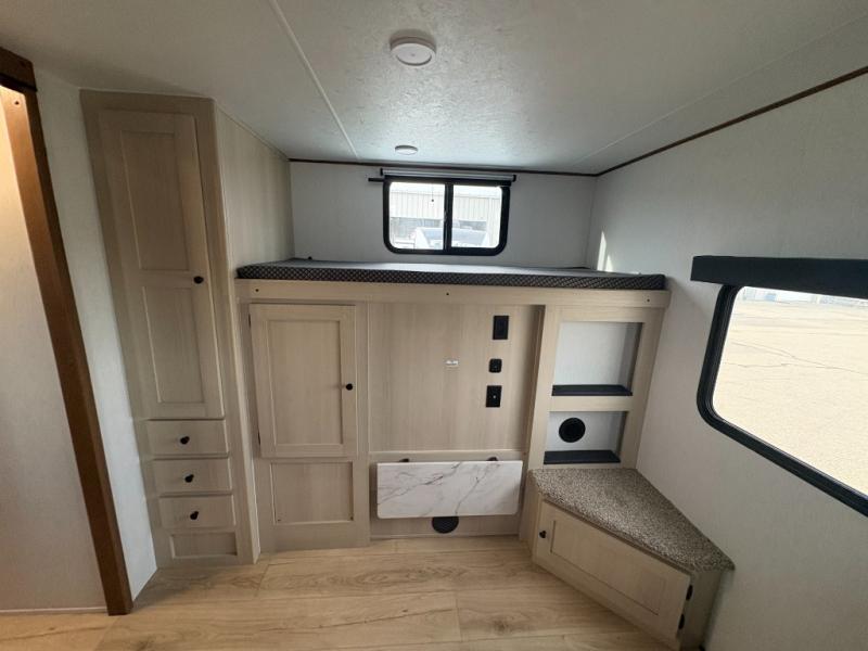 What I liked most: Kitchen counter has a large amount of space. Entertainment Center has lots of storage. Dining booth has one storage cabinet. Kitchen area has plenty of storage. Bunkhouse has plenty of storage with 2 large cabinets, 1 small cabinet and 3 drawers.