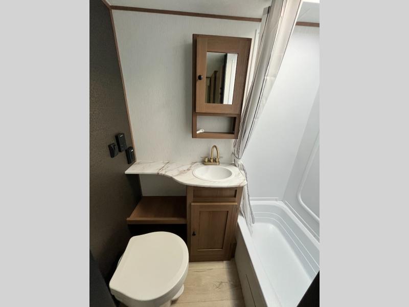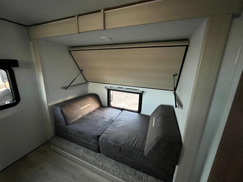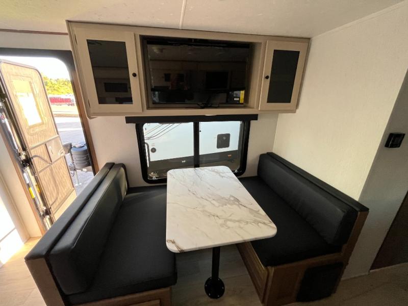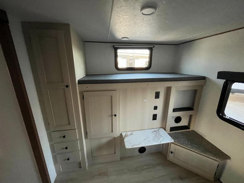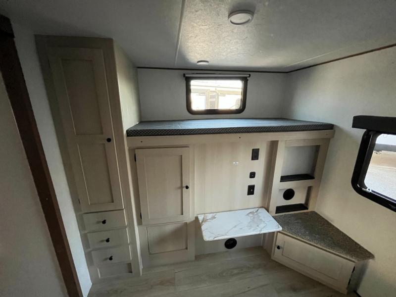 What I liked most: Kitchen counter has a large amount of space. Entertainment Center has lots of storage. Dining booth has one storage cabinet. Kitchen area has plenty of storage. Bunkhouse has plenty of storage with 2 large cabinets, 1 small cabinet and 3 drawers.