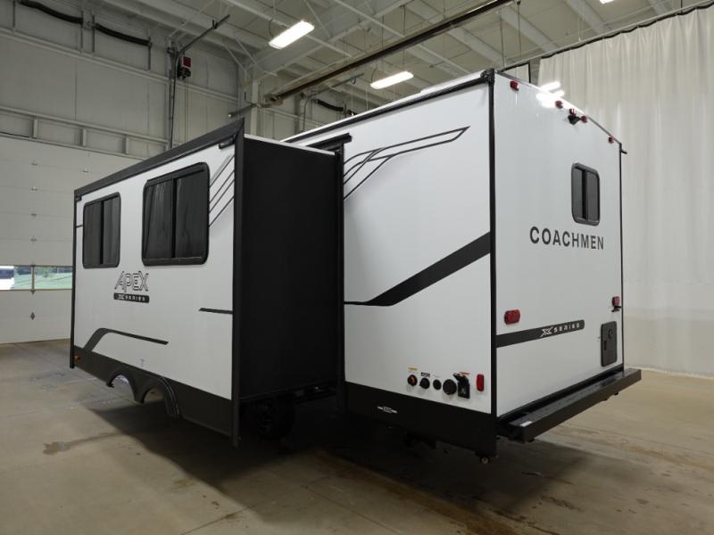 With any Apex X Series travel trailer by Coachmen, you will enjoy camping trips at every turn! They feature higher walls and lower prices compared to the standard Apex line, making them great for first-time RVers! The spacious interior will have you feeling right at home, and the full bath and kitchen amenities make life at the campground hassle-free. There are also plenty of storage space to store your personal belongings, camp gear, food and more! Like with all Coachmen's products, you will find practical innovation, a dependable design, and all the features you're looking for in an RV. Choose an Apex X Series travel trailer today!