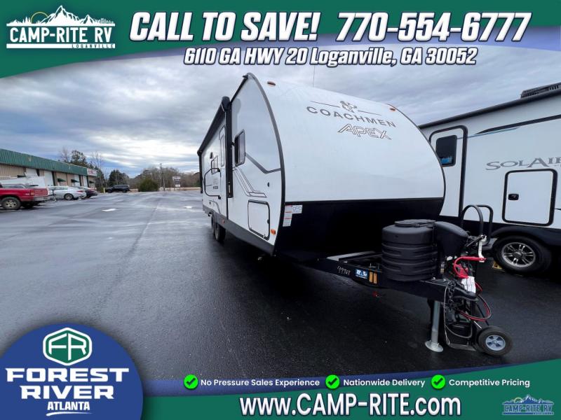 With any Apex X Series travel trailer by Coachmen, you will enjoy camping trips at every turn! They feature higher walls and lower prices compared to the standard Apex line, making them great for first-time RVers! The spacious interior will have you feeling right at home, and the full bath and kitchen amenities make life at the campground hassle-free. There are also plenty of storage space to store your personal belongings, camp gear, food and more! Like with all Coachmen's products, you will find practical innovation, a dependable design, and all the features you're looking for in an RV. Choose an Apex X Series travel trailer today!