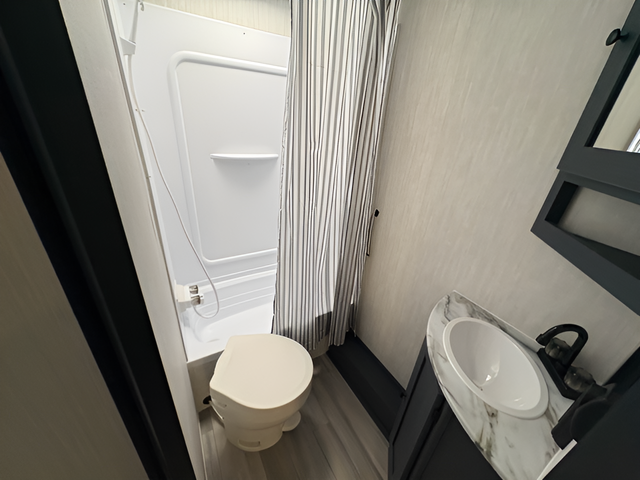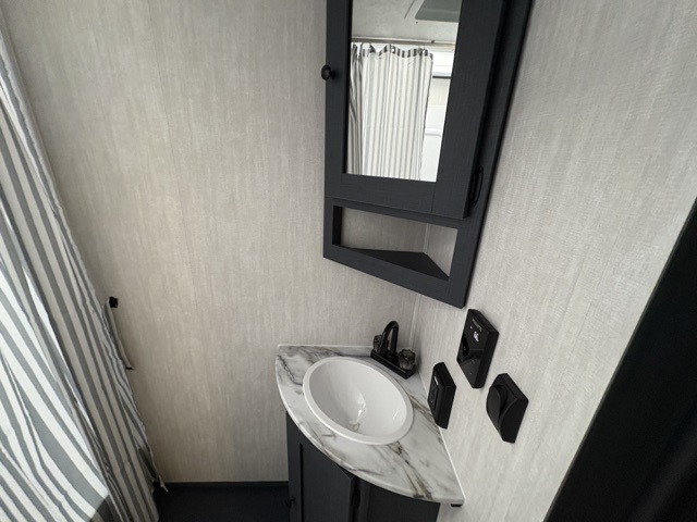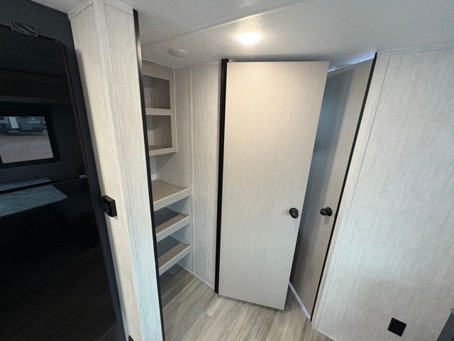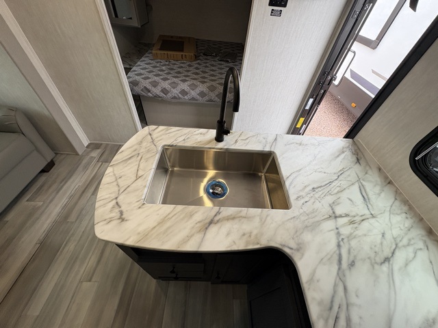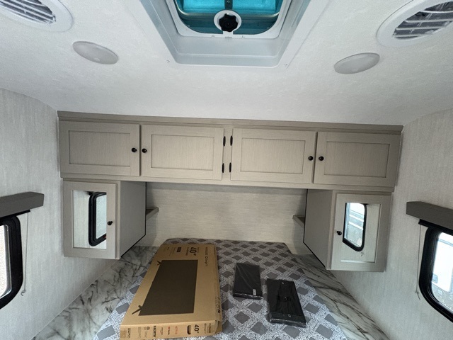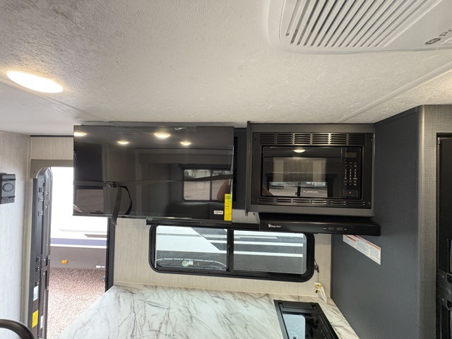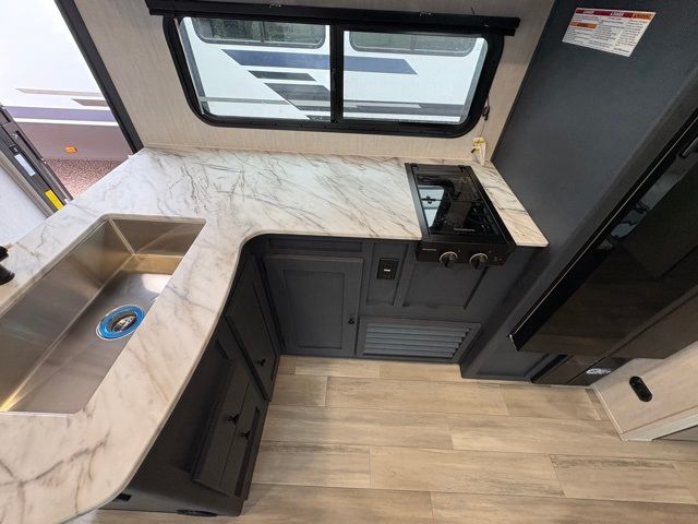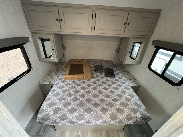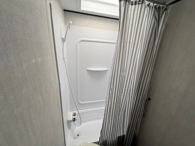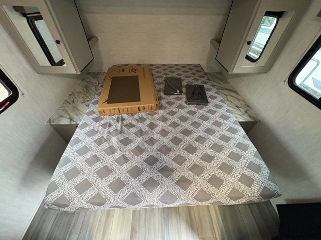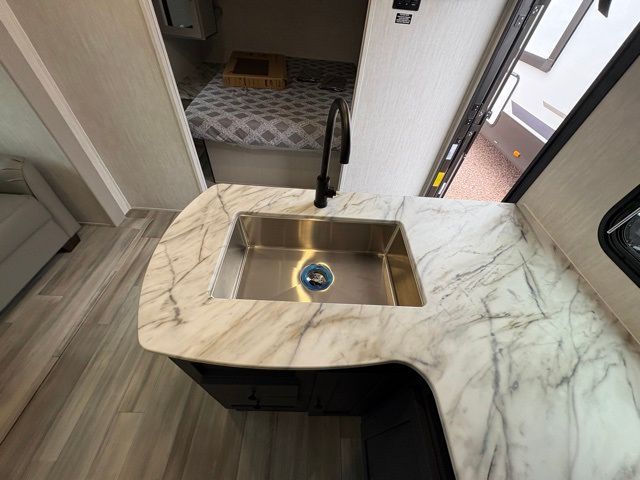 Make each camping trip count in this spacious travel trailer! You will love having your own bedroom up front that includes a queen bed with super storage below plus an overhead cabinet for books and more. A large slide out in the combined kitchen and living area houses the sofa and booth dinette, and these pieces of furniture can double as sleeping space for guests as well. The chef of your group will appreciate the L-shaped kitchen counter with a large sink, a microwave and range plus a refrigerator and pantry for food storage. This unit also includes 30" x 74" double-size bunks for your guests or kids!