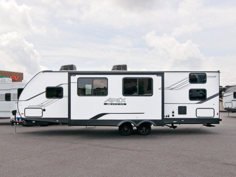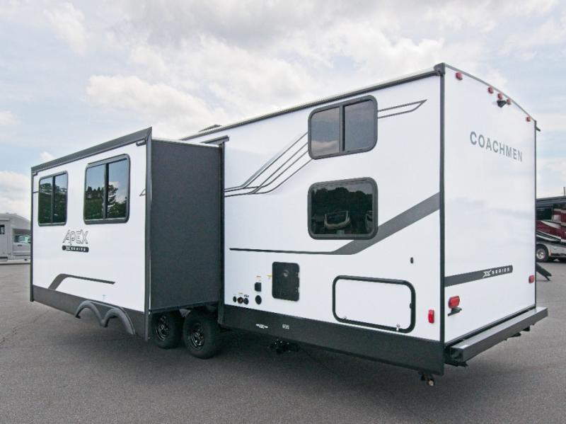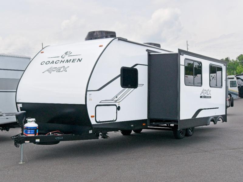 The Apex X Series travel trailers by Coachmen offer higher walls and lower prices compared to the standard Apex line, making them perfect for first-time RVers. Enjoy the spacious interior, full bath, and kitchen amenities that make life at the campground hassle-free. With plenty of storage space for personal belongings, camp gear, and food, you'll have everything you need for a comfortable stay. Coachmen's practical innovation, dependable design, and sought-after features ensure that the Apex X Series travel trailer is the perfect choice for your next adventure.