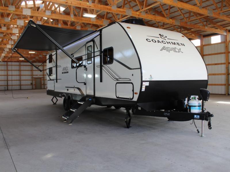 With any Apex X Series travel trailer by Coachmen, you will enjoy camping trips at every turn! They feature higher walls and lower prices compared to the standard Apex line, making them great for first-time RVers! The spacious interior will have you feeling right at home, and the full bath and kitchen amenities make life at the campground hassle-free. There are also plenty of storage space to store your personal belongings, camp gear, food and more! Like with all Coachmen's products, you will find practical innovation, a dependable design, and all the features you're looking for in an RV. Choose an Apex X Series travel trailer today!